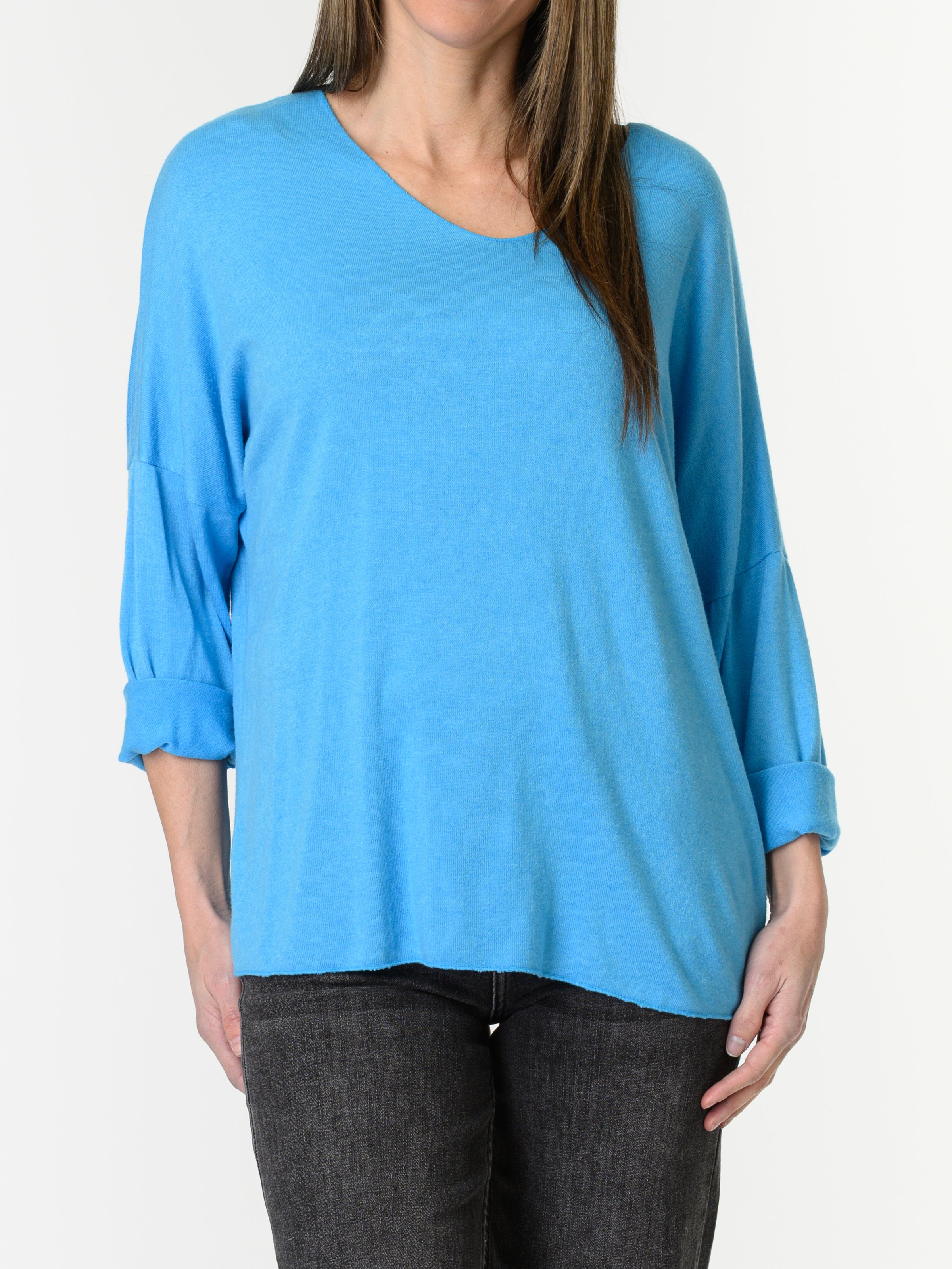 Découvrez notre chandail bleu uni à manche longue. Ce modèle de couleur unie est idéal pour apporter de la superposition aux looks. Il est léger et respirant. Cette pièce allie style et confort.