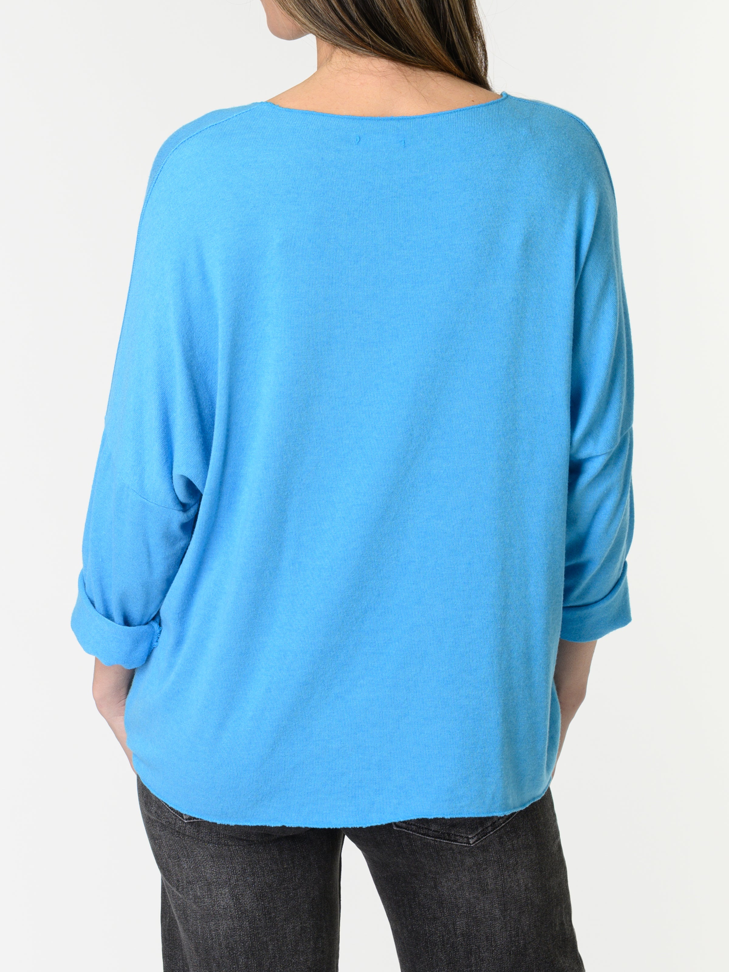Chandail bleu uni à manche longue