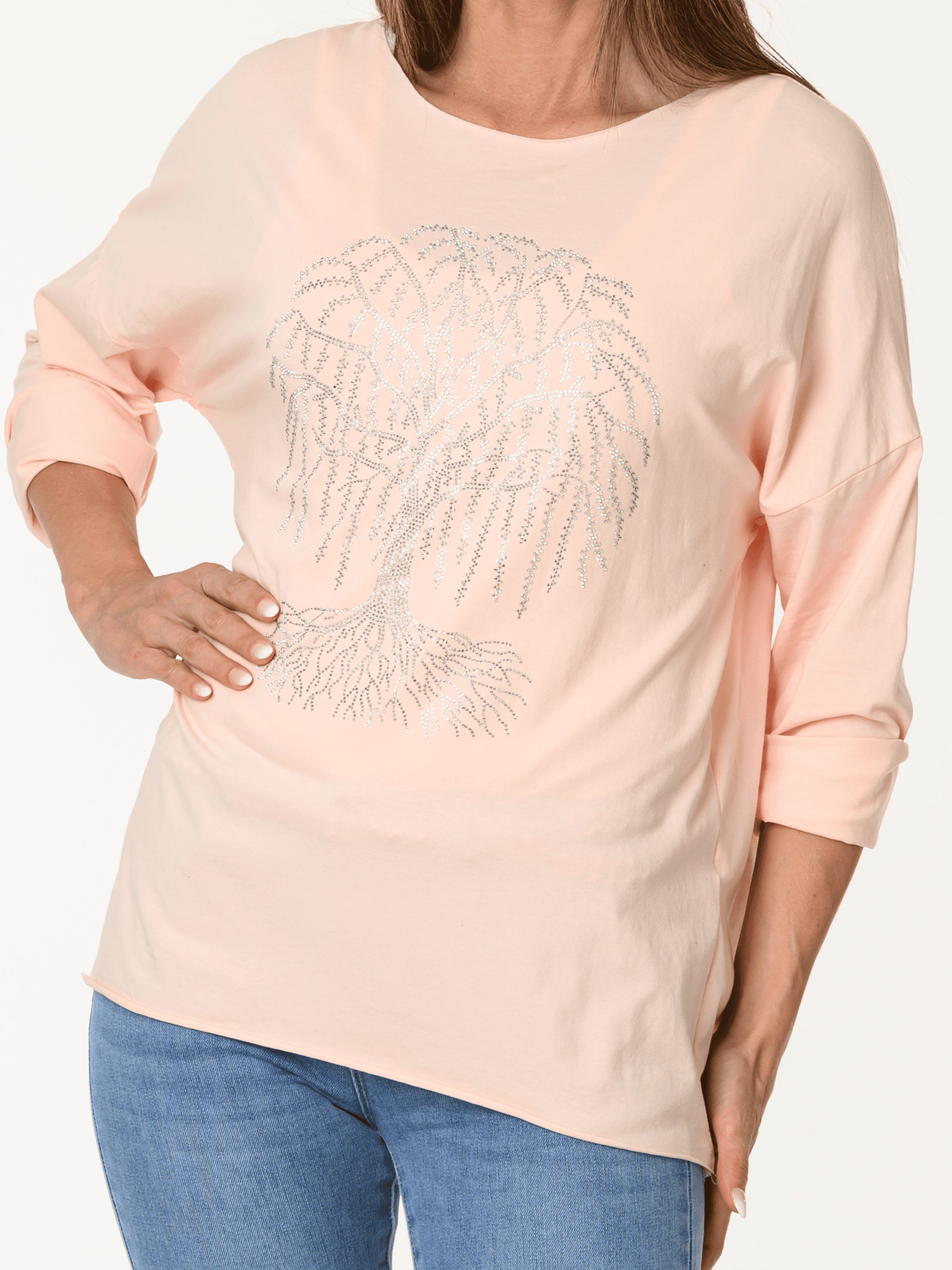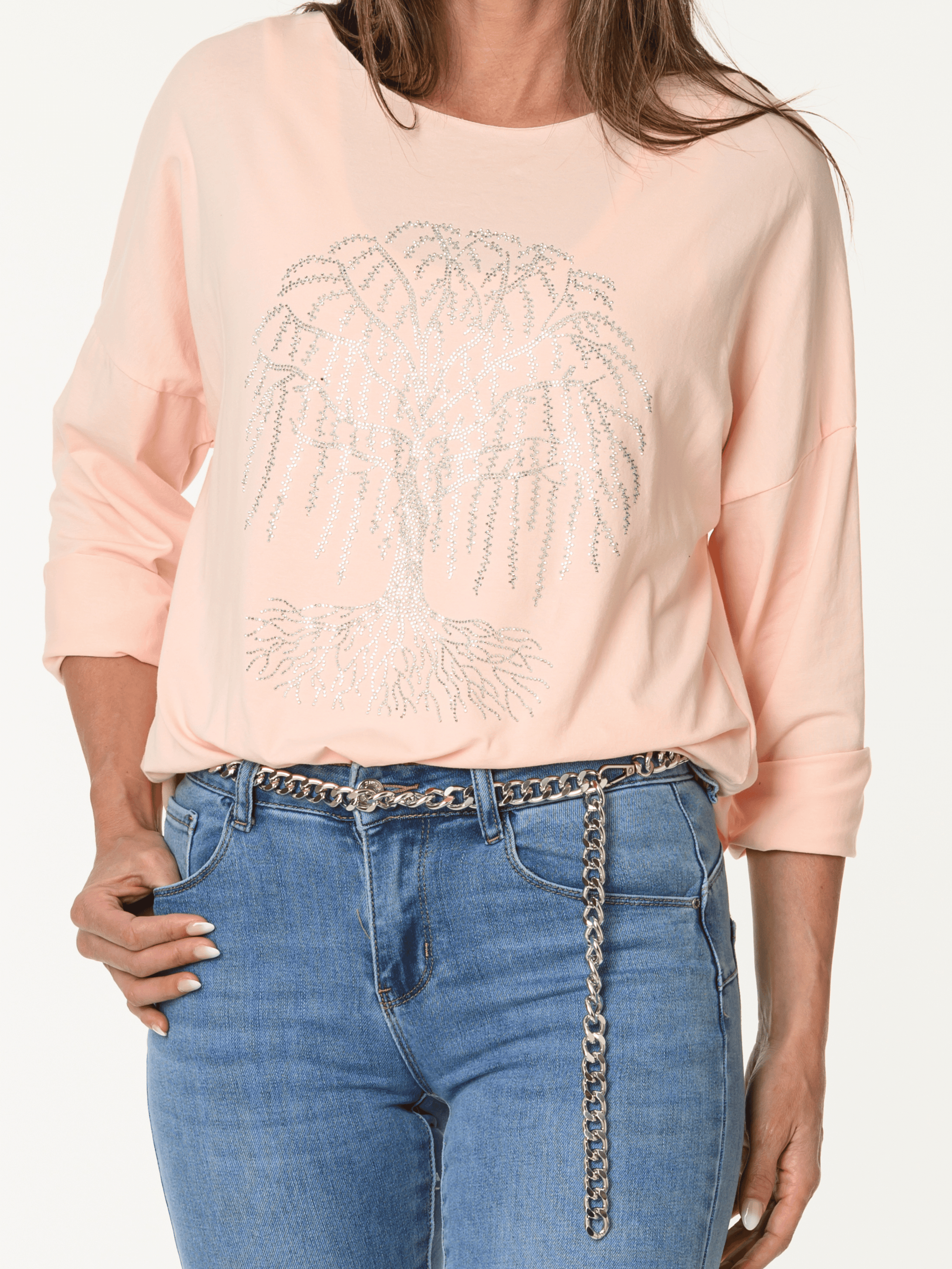 Découvrez notre chandail corail avec arbre de vie argenté. Ce chandail à manches longues est orné d'un arbre de vie composé de pépites argentées. Cette pièce allie style et confort.