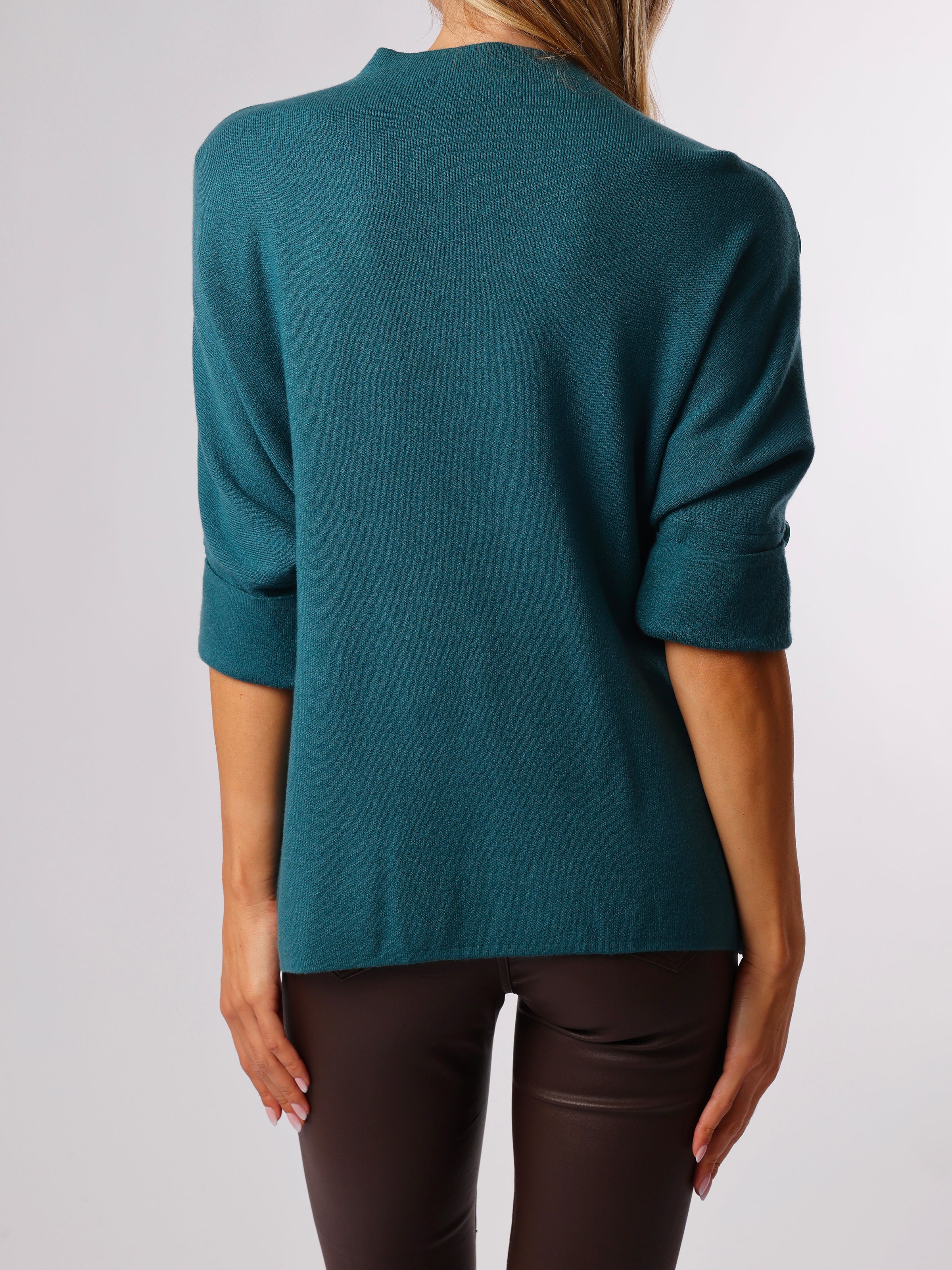 Découvrez notre chandail bleu sarcelle avec boutons sur les côtés. Ce modèle de couleur unie comporte des manches pliées dans le bas, ainsi que de boutons décoratifs sur les côtés. Cette pièce ajoute une touche classique et allie style et confort.