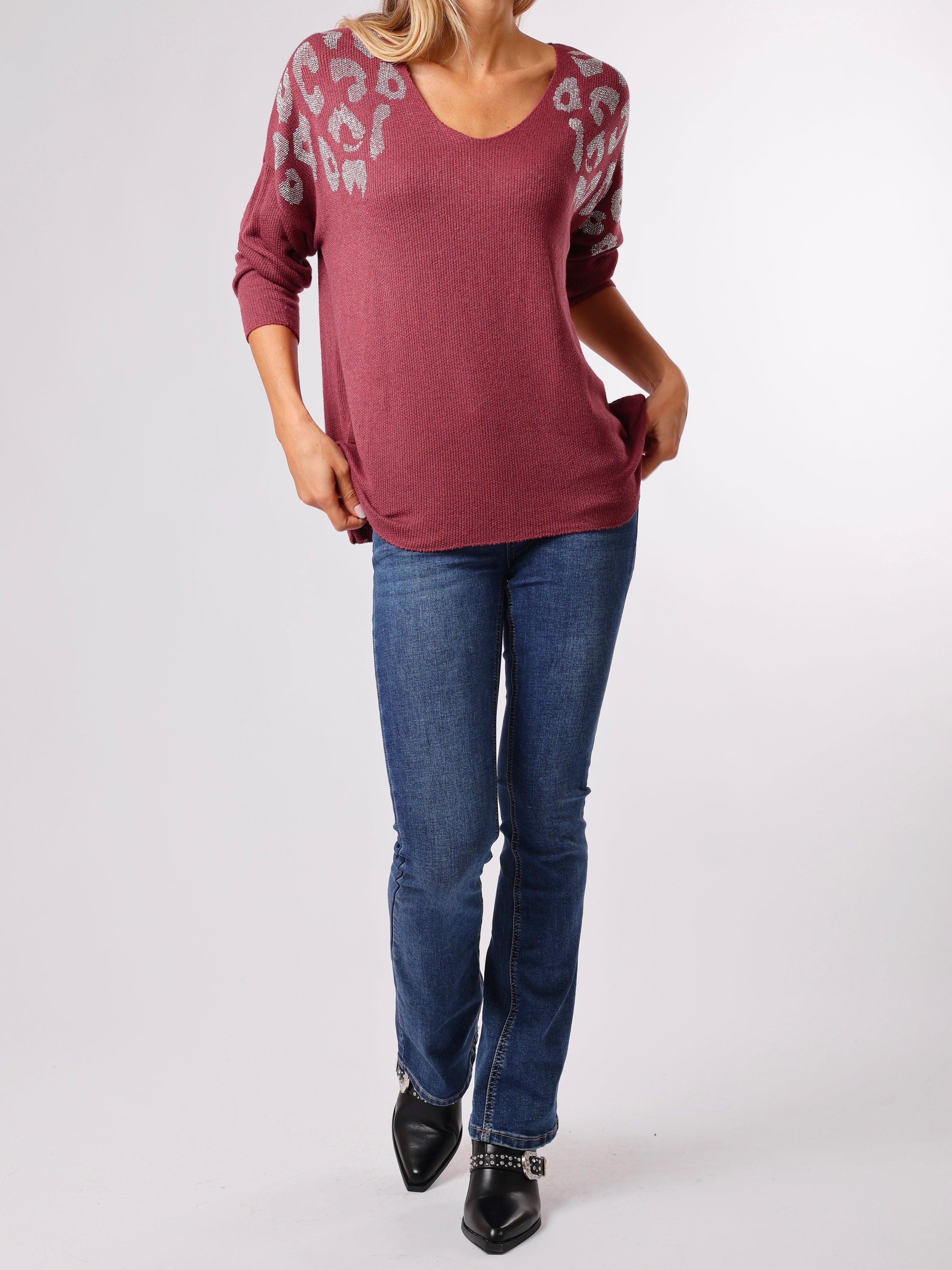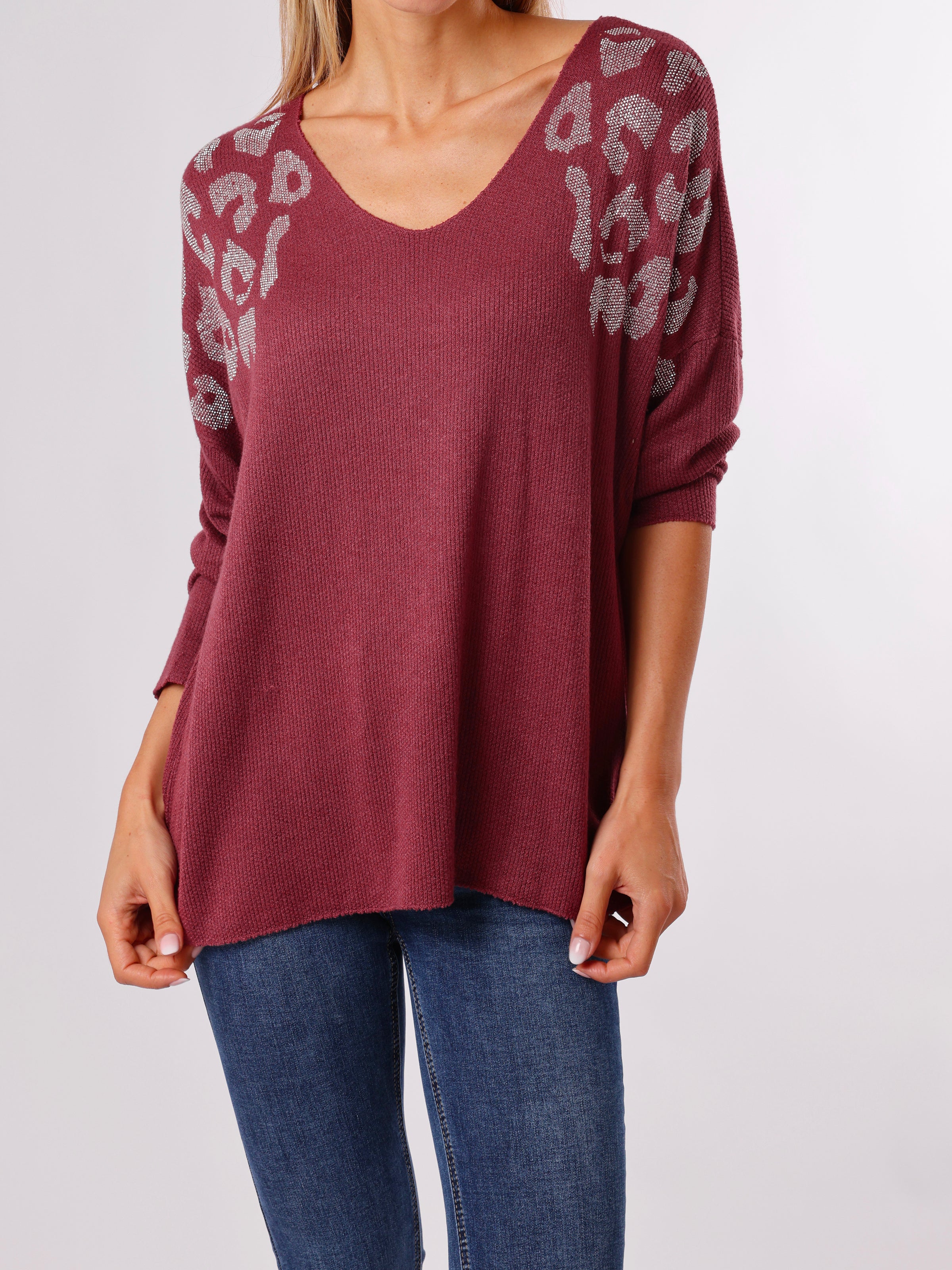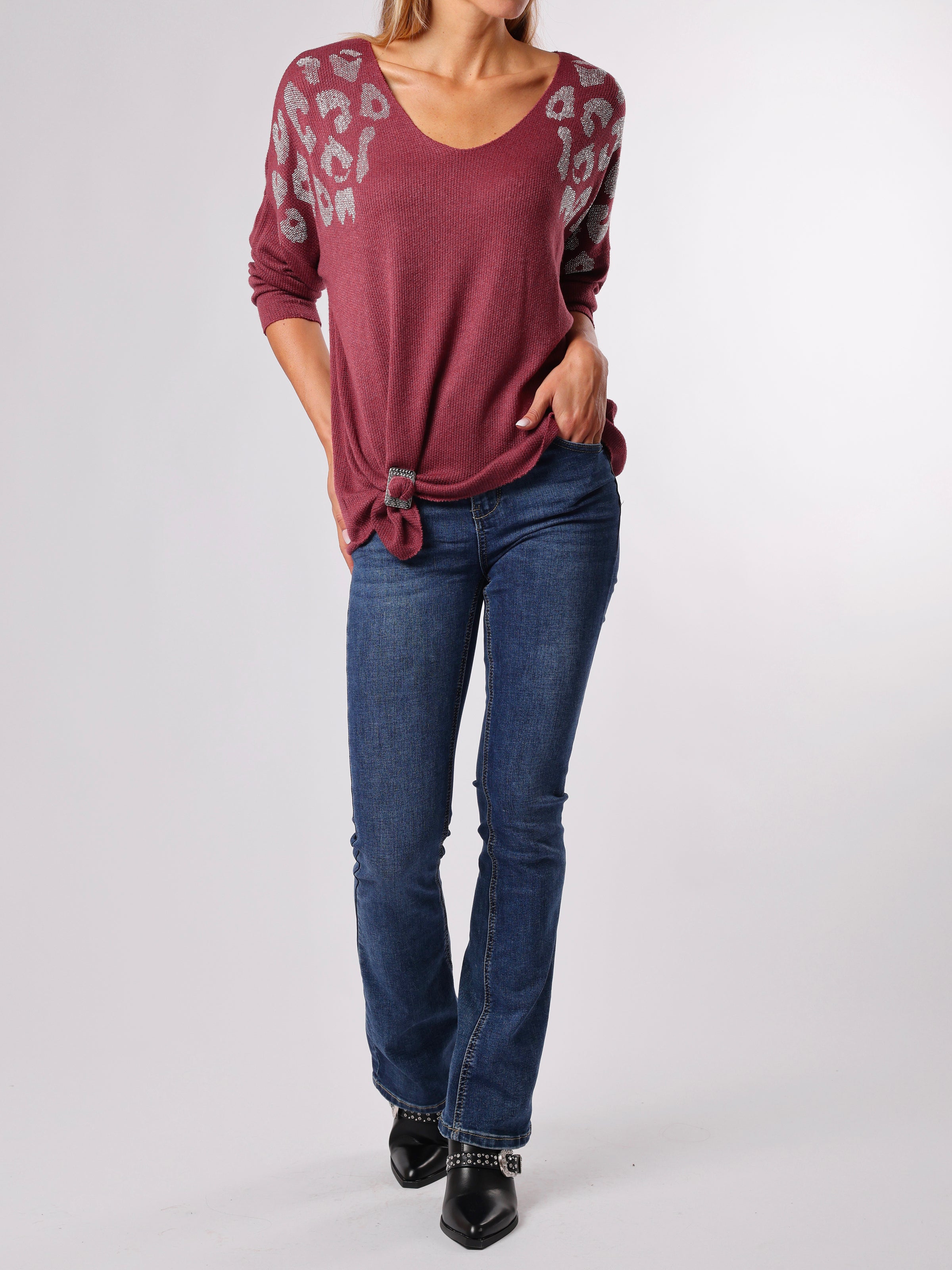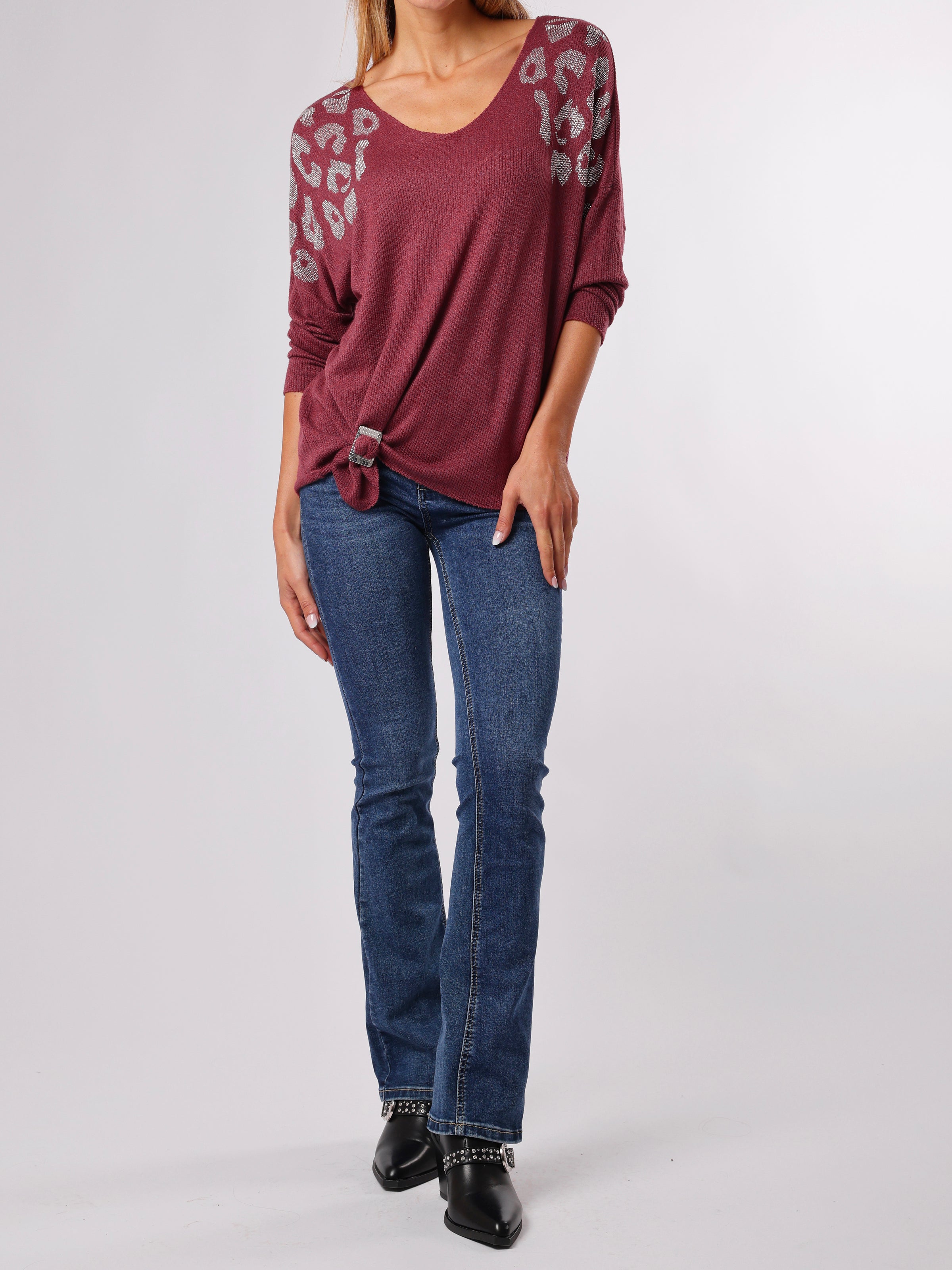 NEW - Chandail bourgogne à motifs de léopard argentés