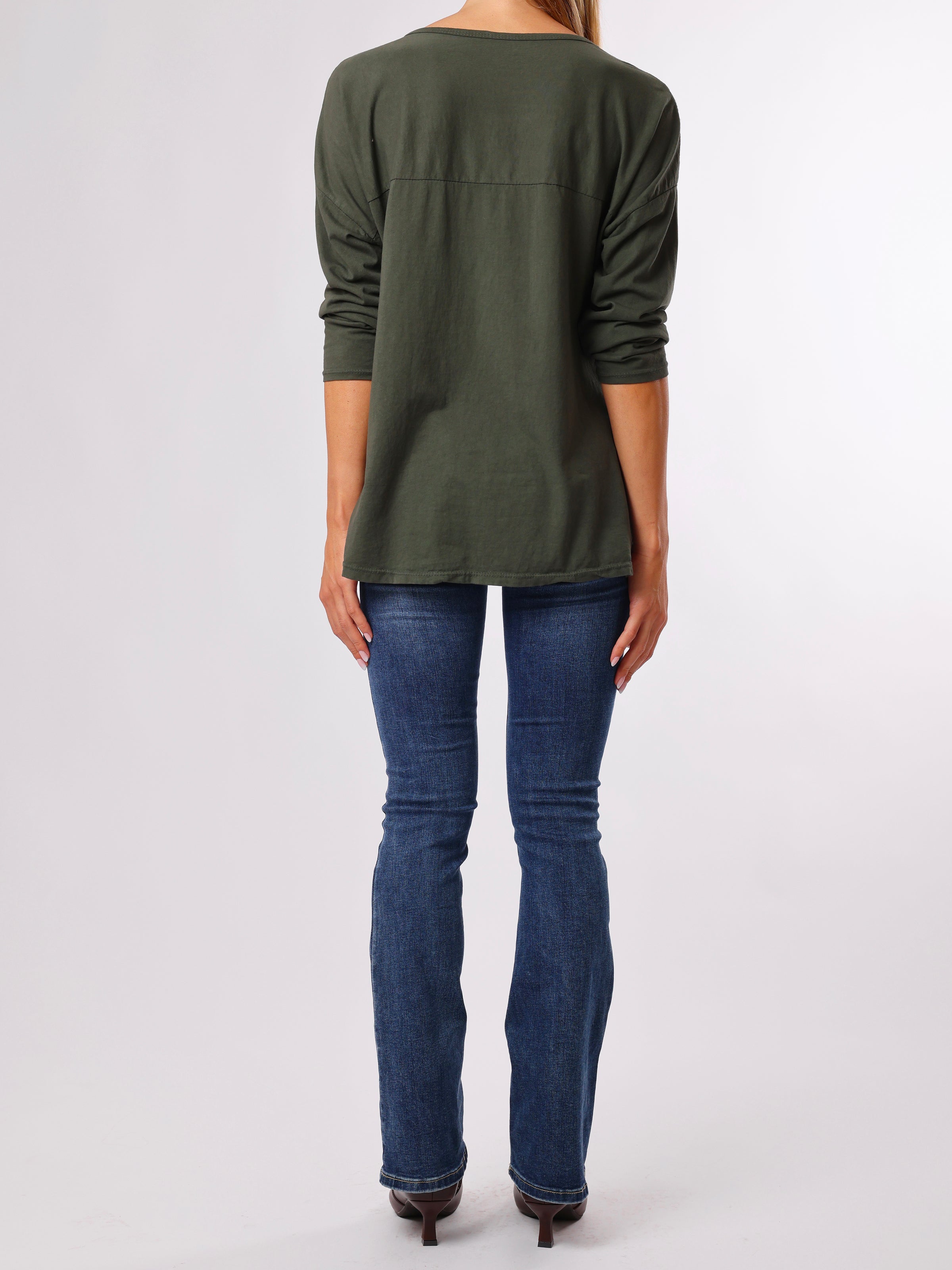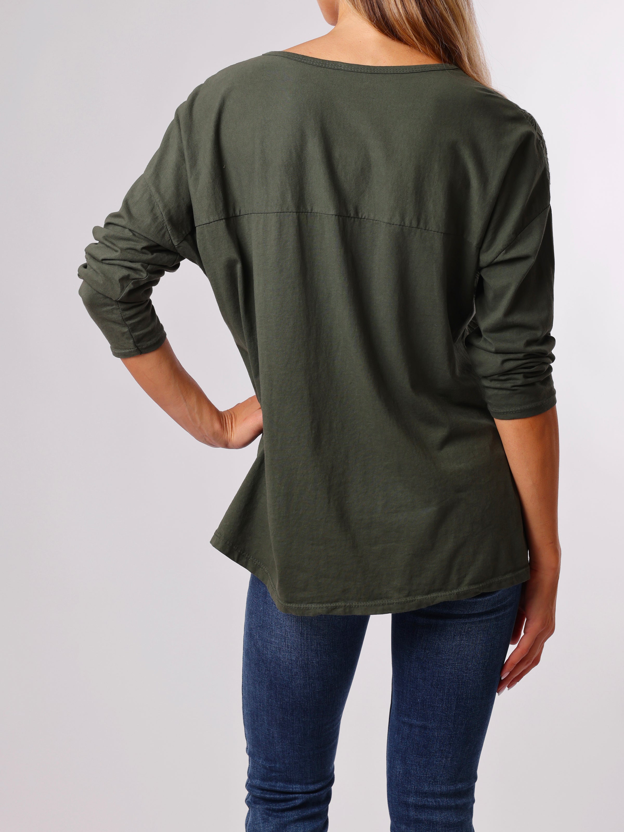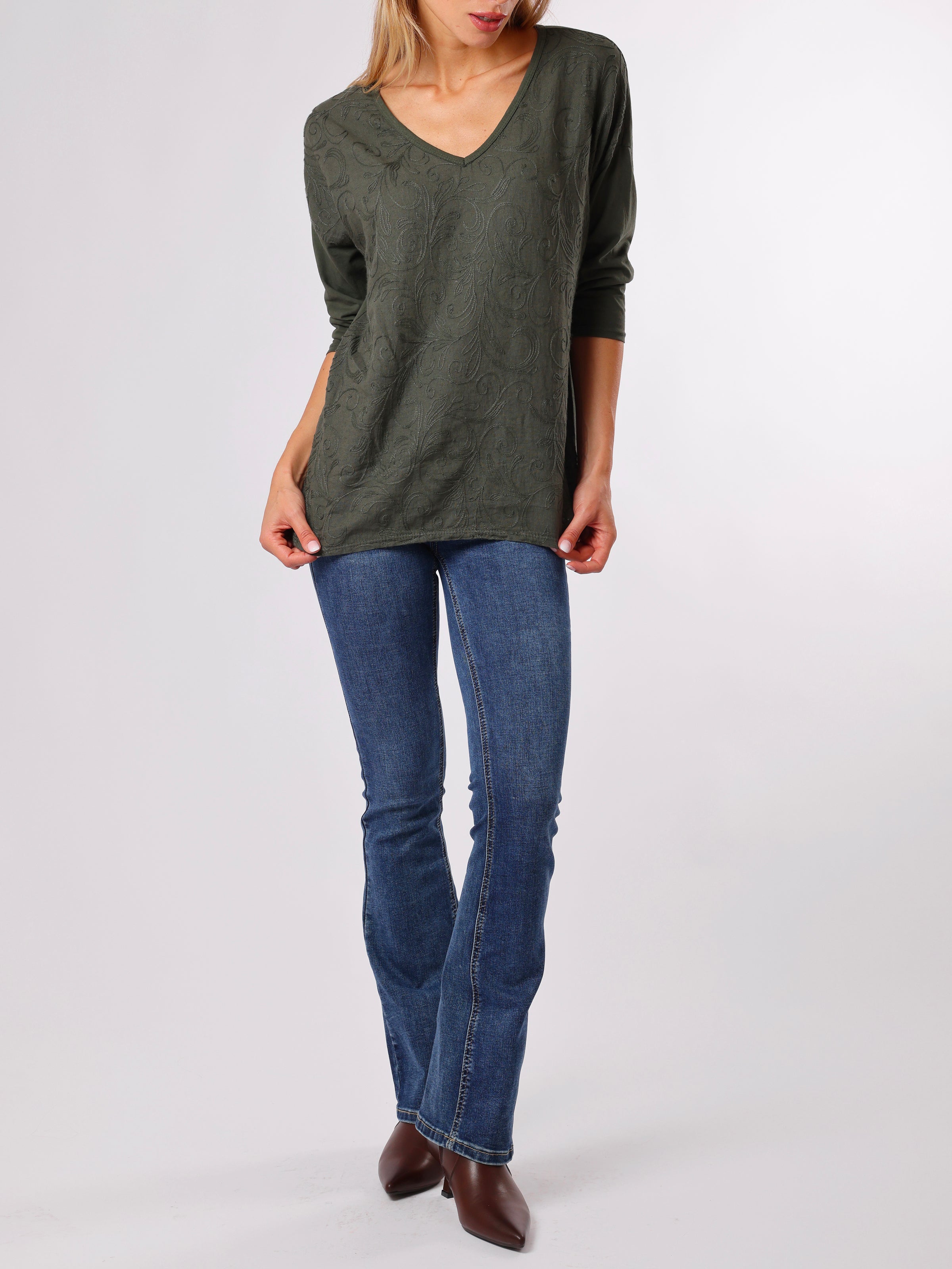 Découvrez notre chandail kaki foncé avec motifs de feuilles brodées. Ce modèle à manches longues est orné de motifs de feuilles kaki brodées, sur le devant. Cette pièce décontractée allie style et confort.