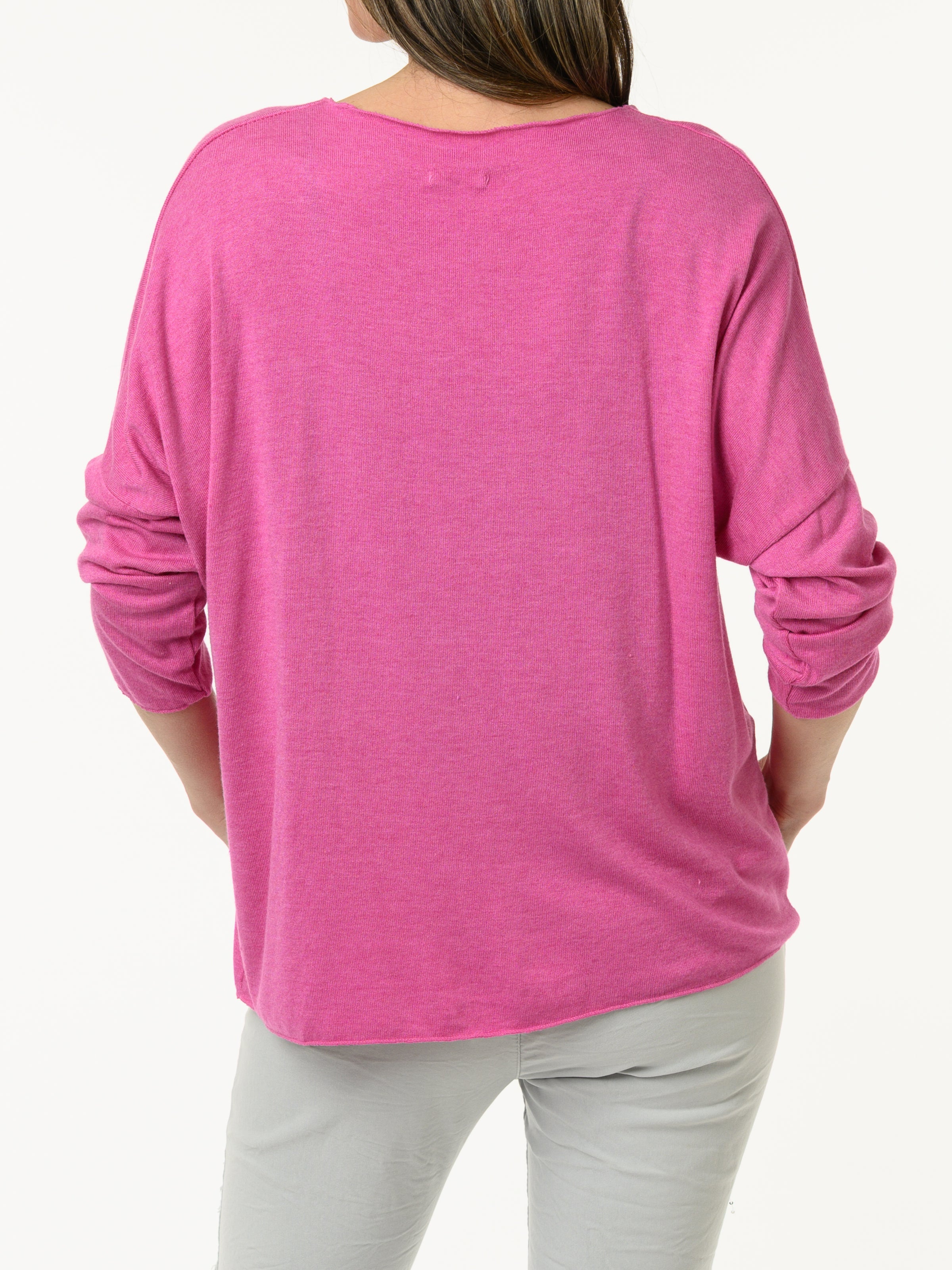 Découvrez notre chandail magenta à manche longue. Ce modèle de couleur unie est idéal pour apporter de la superposition aux looks. Il est léger et respirant. Cette pièce allie style et confort.