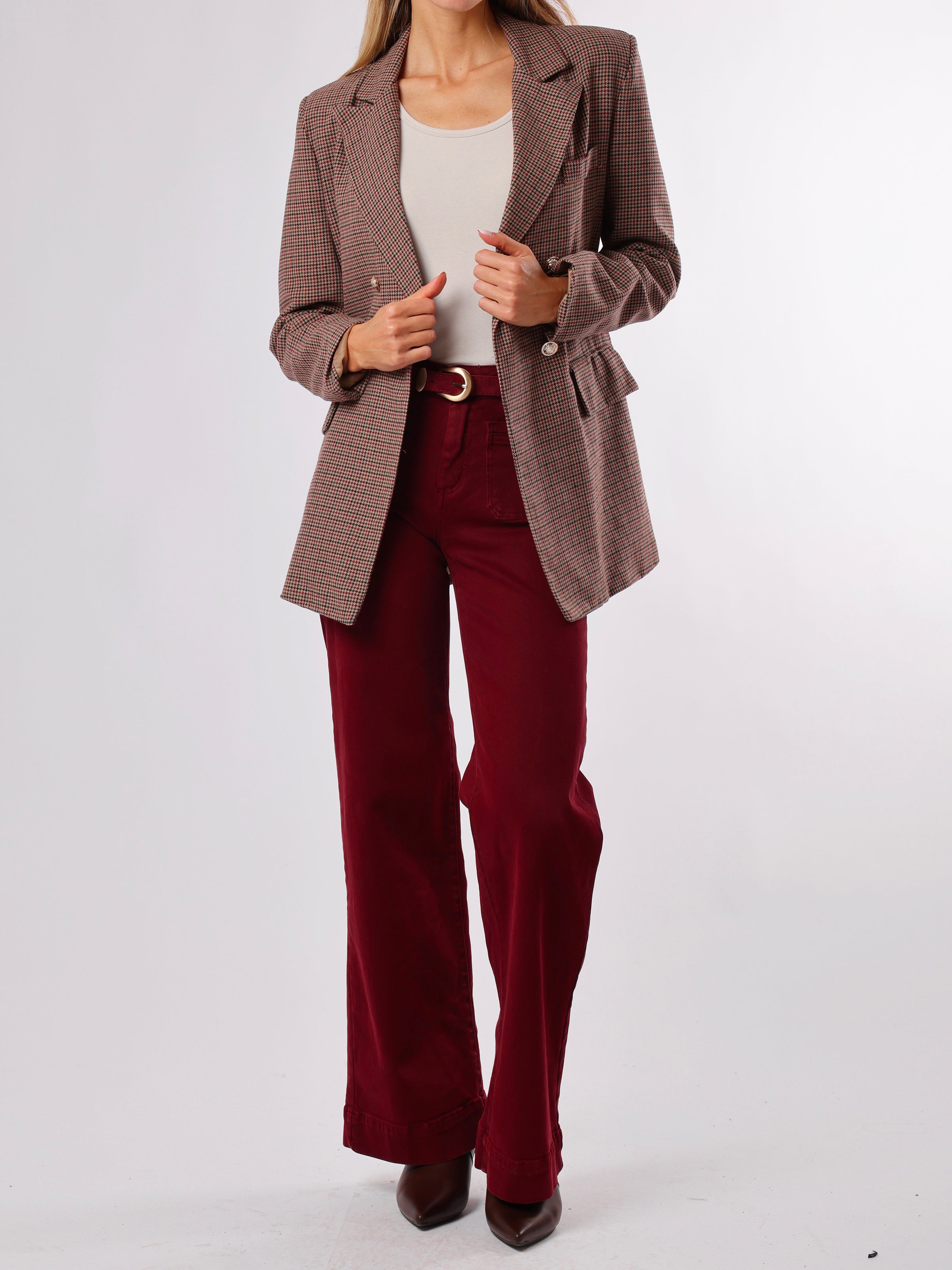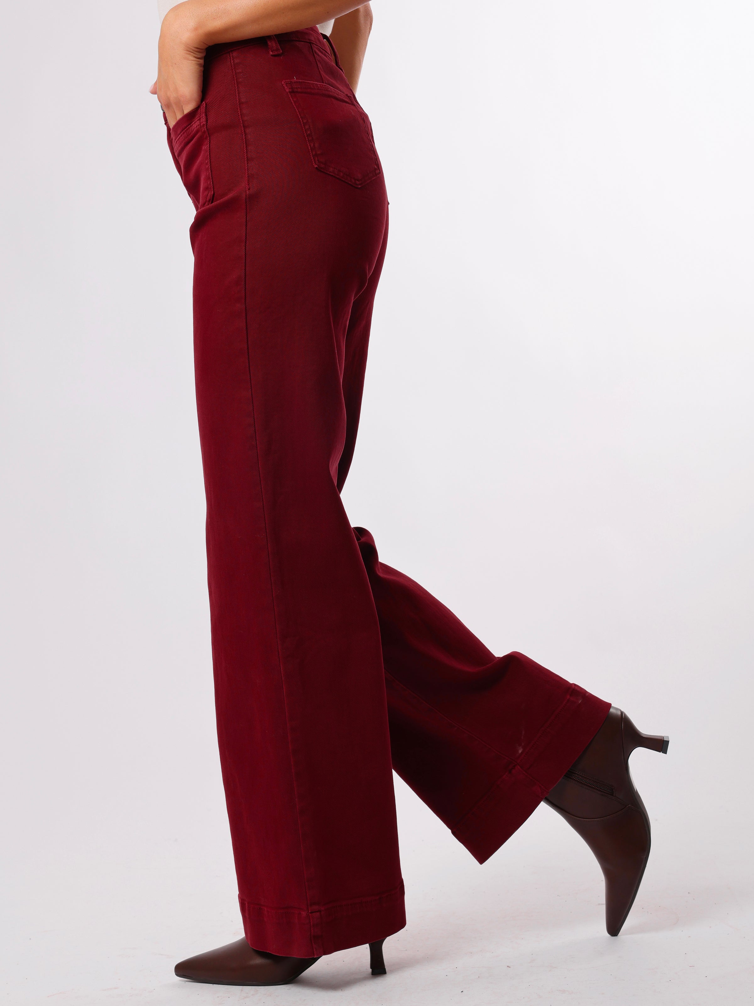 Découvrez notre jeans bourgogne avec poches appliquées en avant. Doté de poches pratiques en avant et en arrière. Ce jeans allie style chic et tendance. Ce modèle fait environ 31 pouces de longueur de jambe avec le bas déplié.