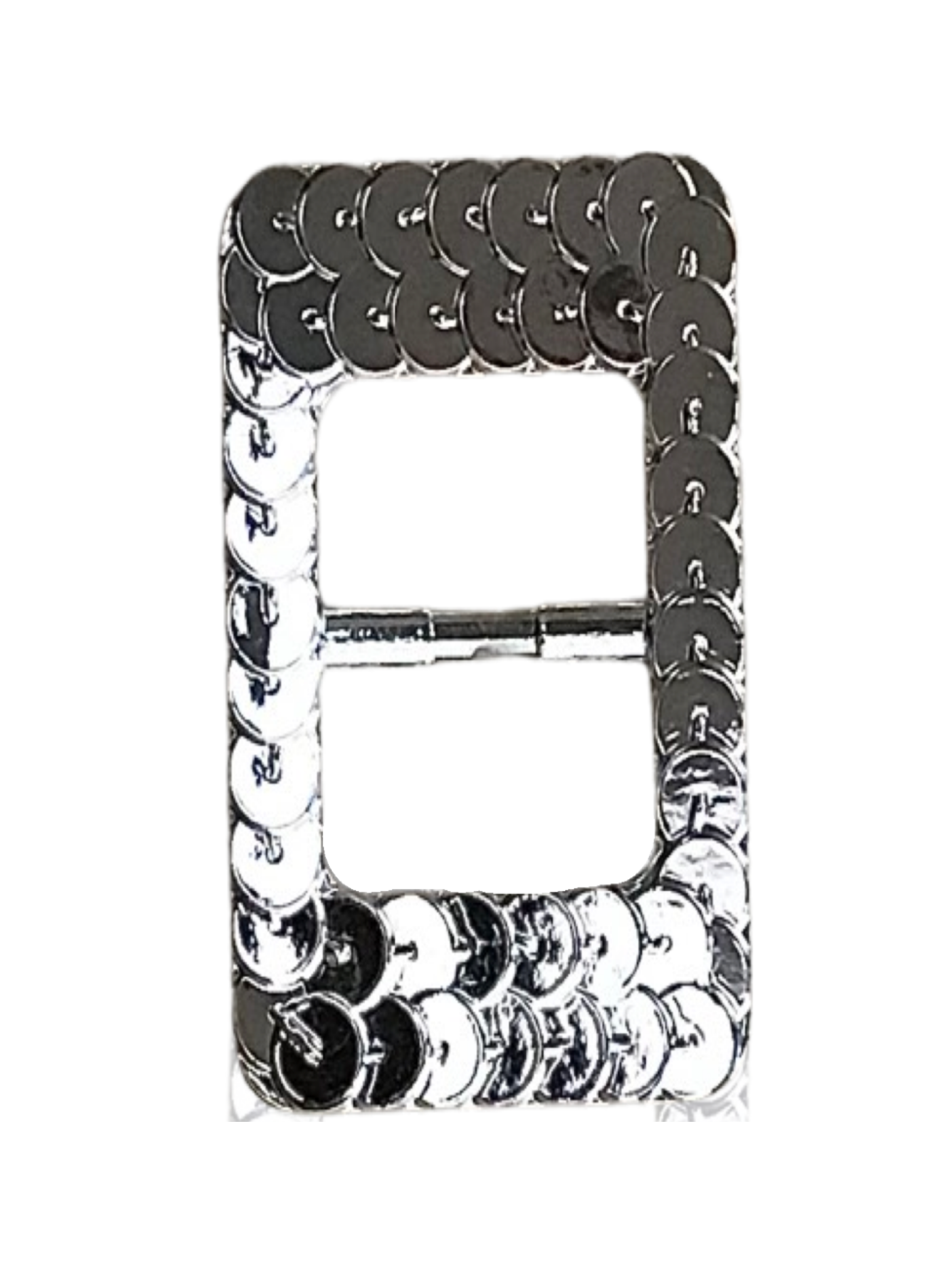 Découvrez notre boucle d'ajustement argentée à paillettes. Elle mesure 1 5/8 po (5cm) de long par 1 1/4 po (3cm) de large. Cette boucle est en plastique argenté et elle comporte une imitation de paillettes. Elle allie élégance et sophistication.