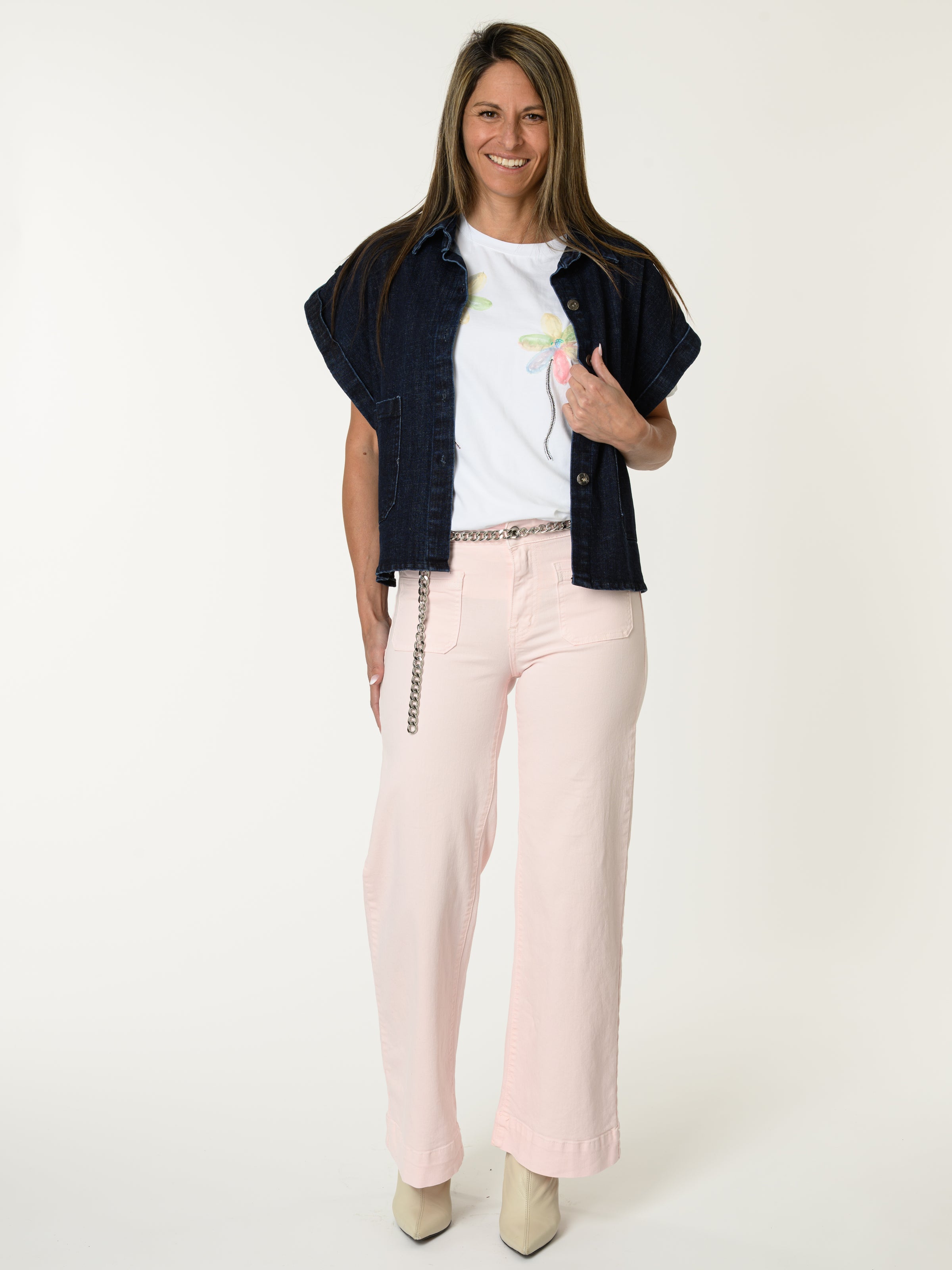 Découvrez notre t-shirt blanc avec imprimé de deux fleurs texturées. Ce modèle est orné de deux fleurs texturées dans des couleurs pastels. Le tout orné de paillettes et de brillants argentés. Cette pièce allie style original et tendance.