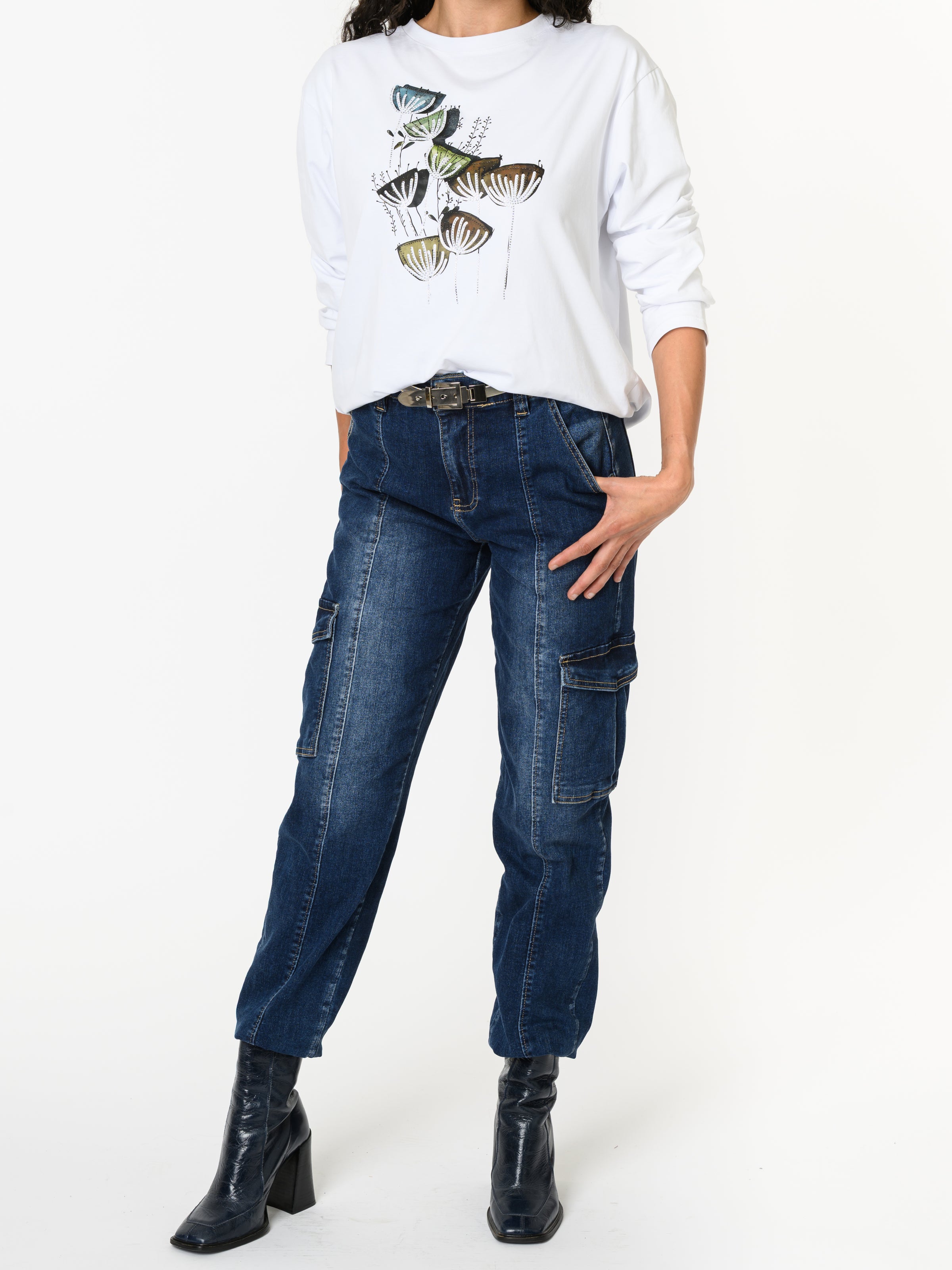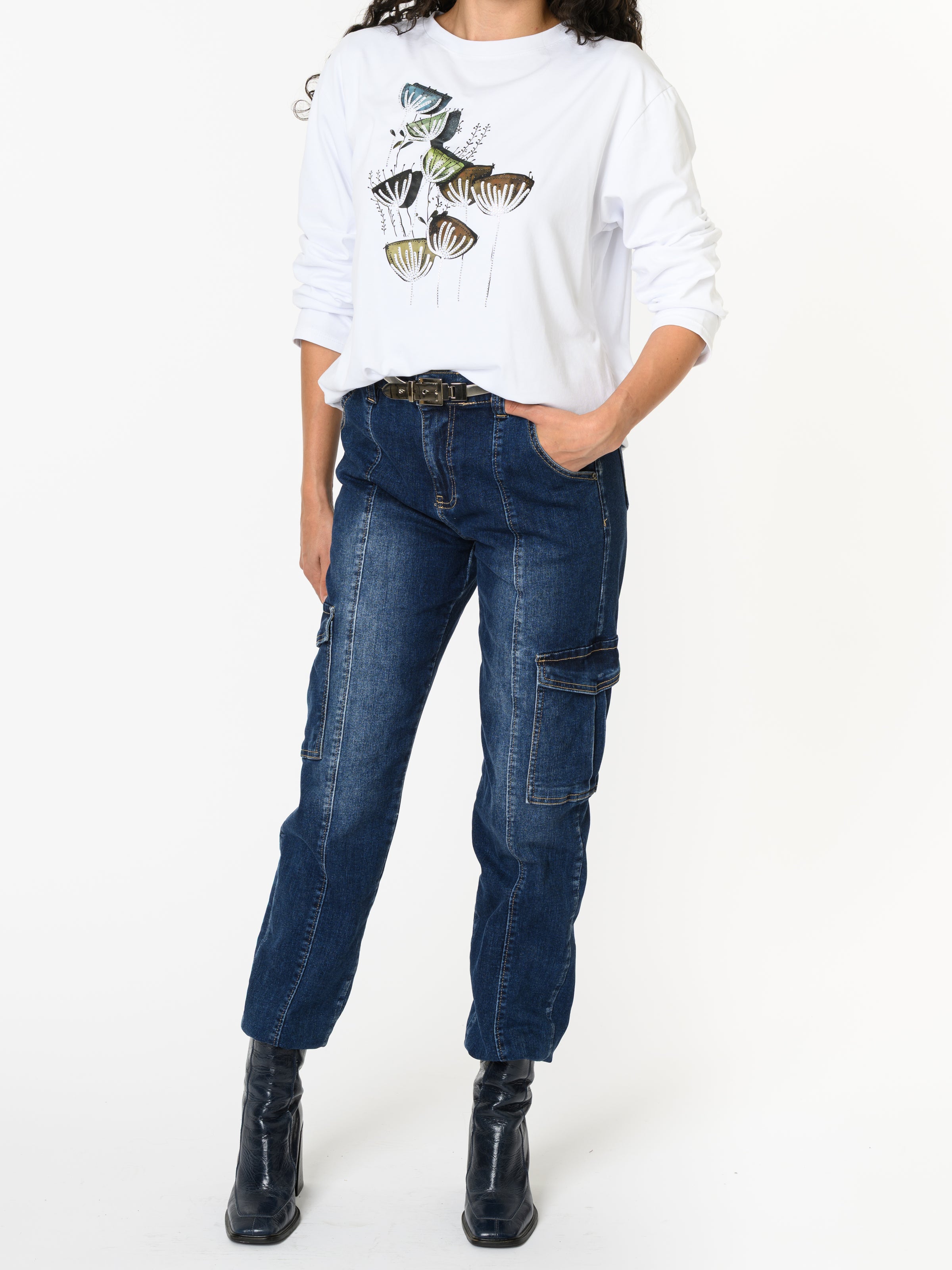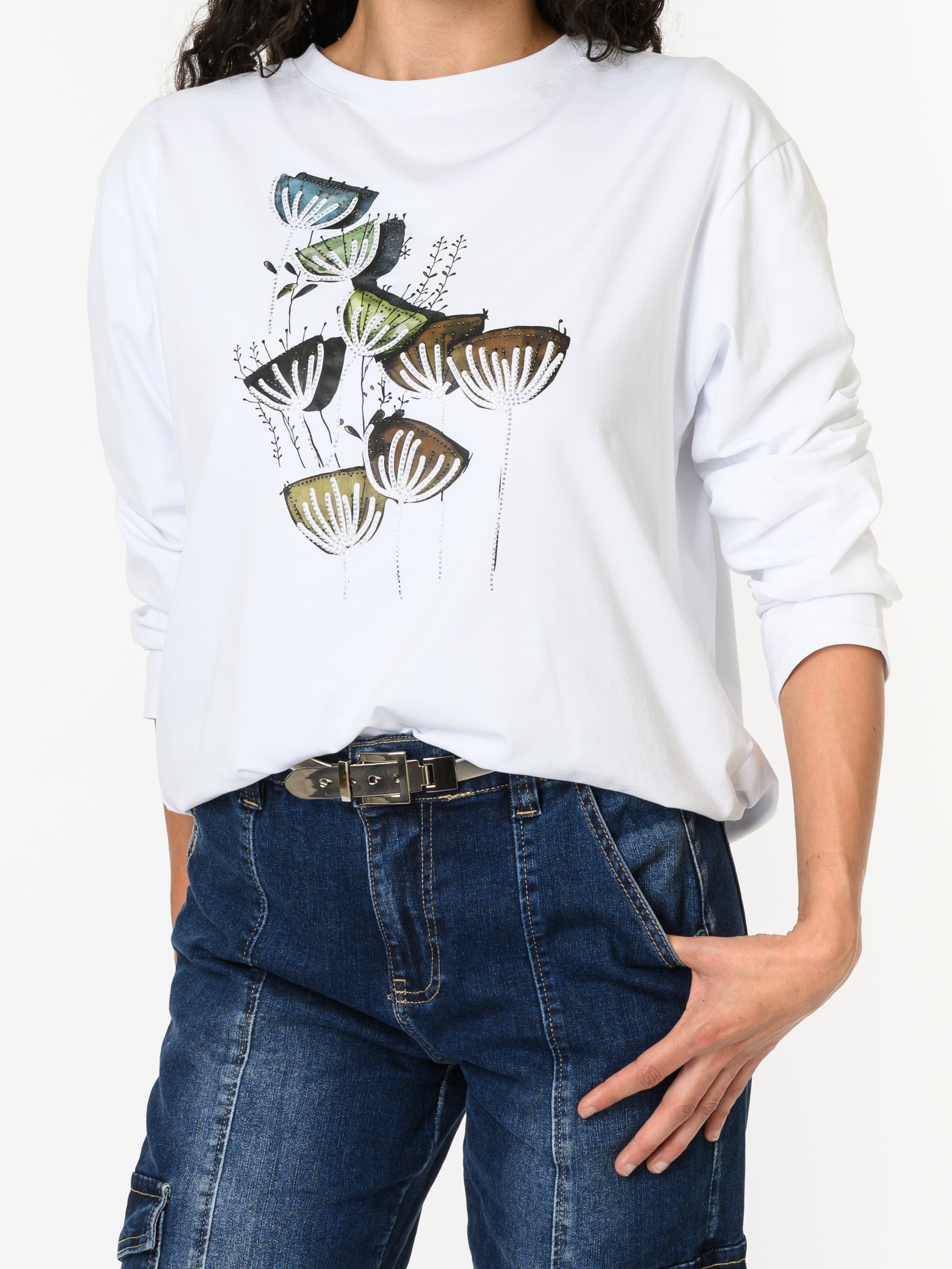 NEW - Chandail blanc à manche longue avec imprimé floral