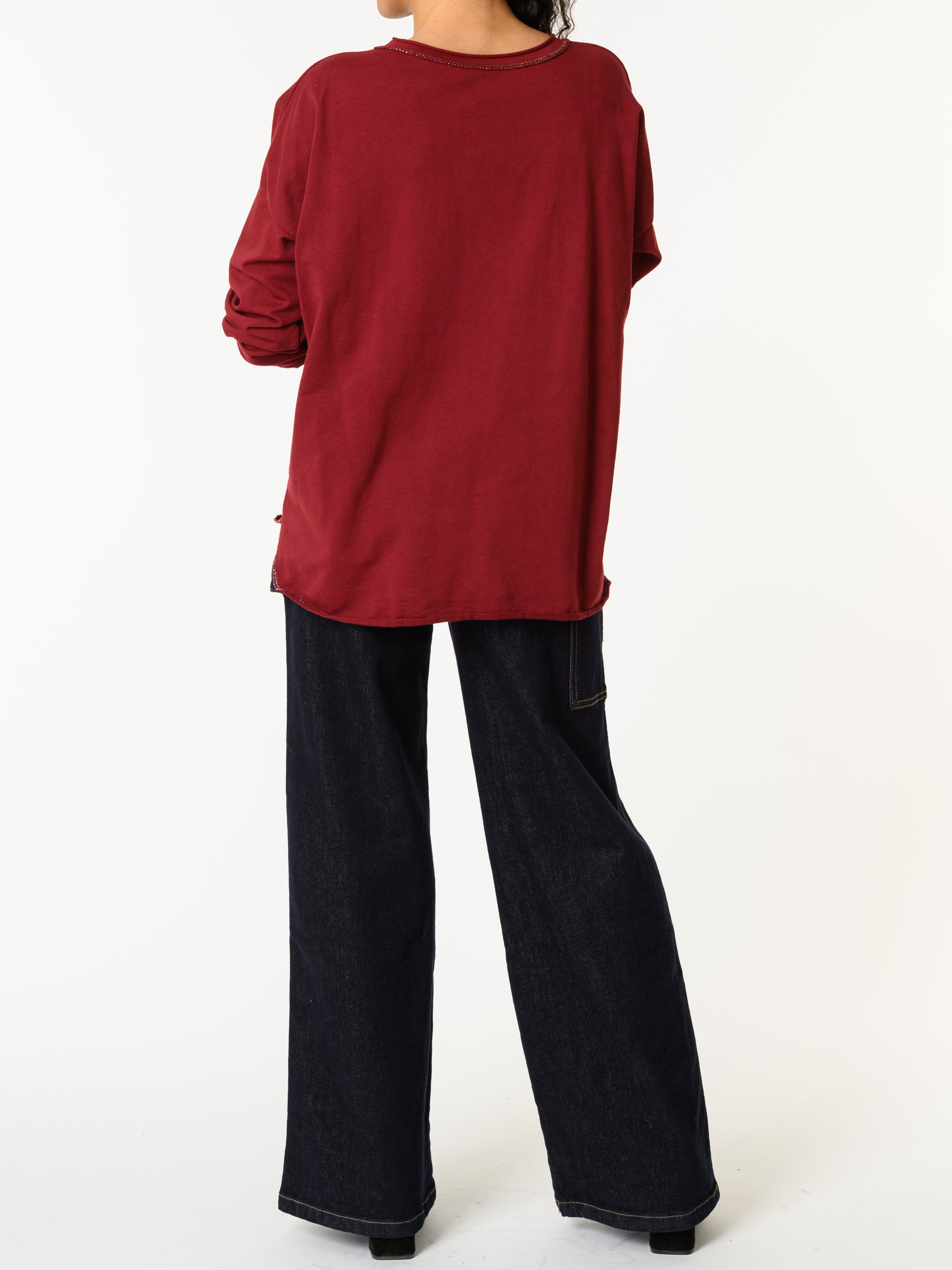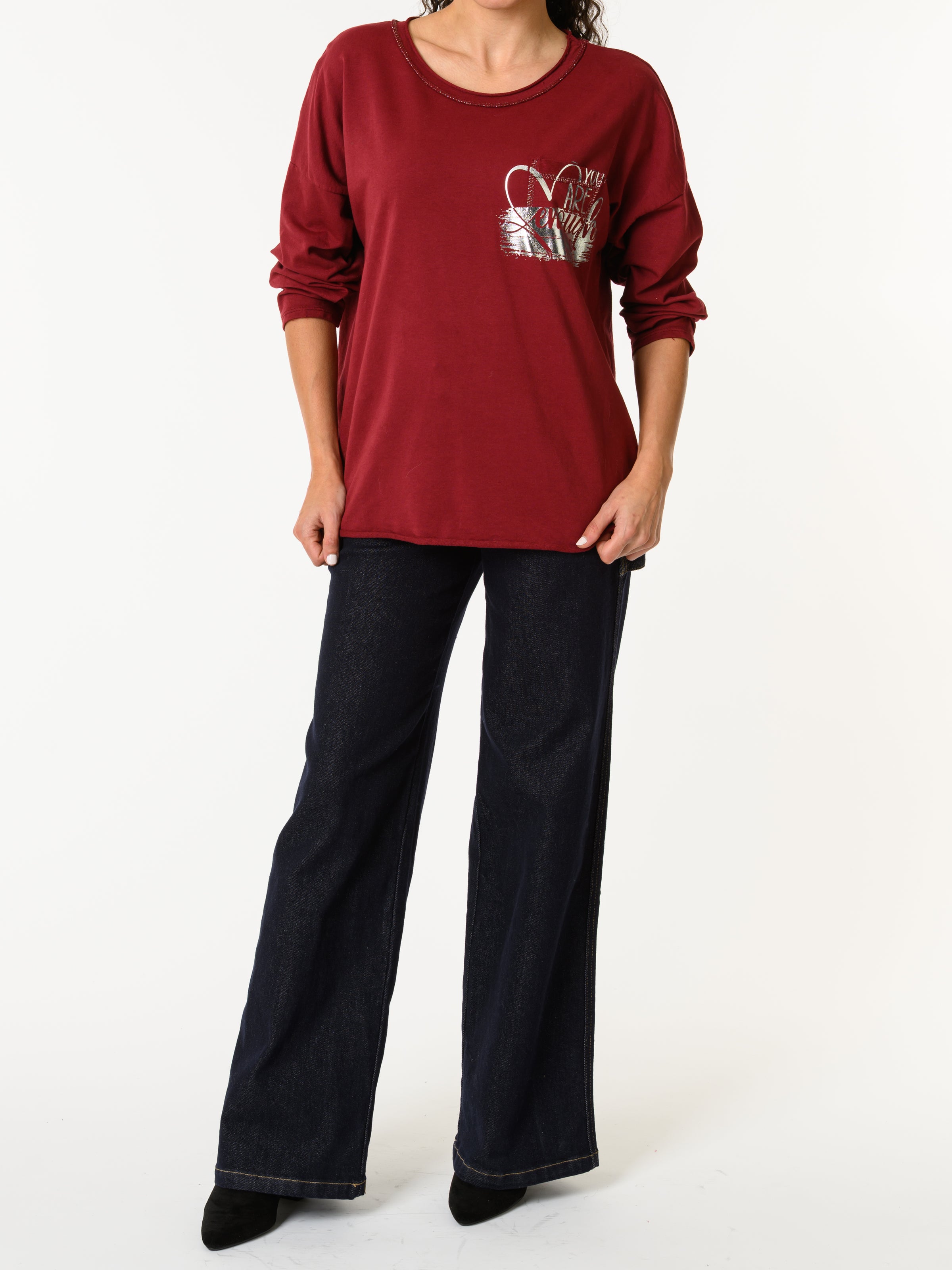 NEW - Chandail bourgogne avec imprimé argenté