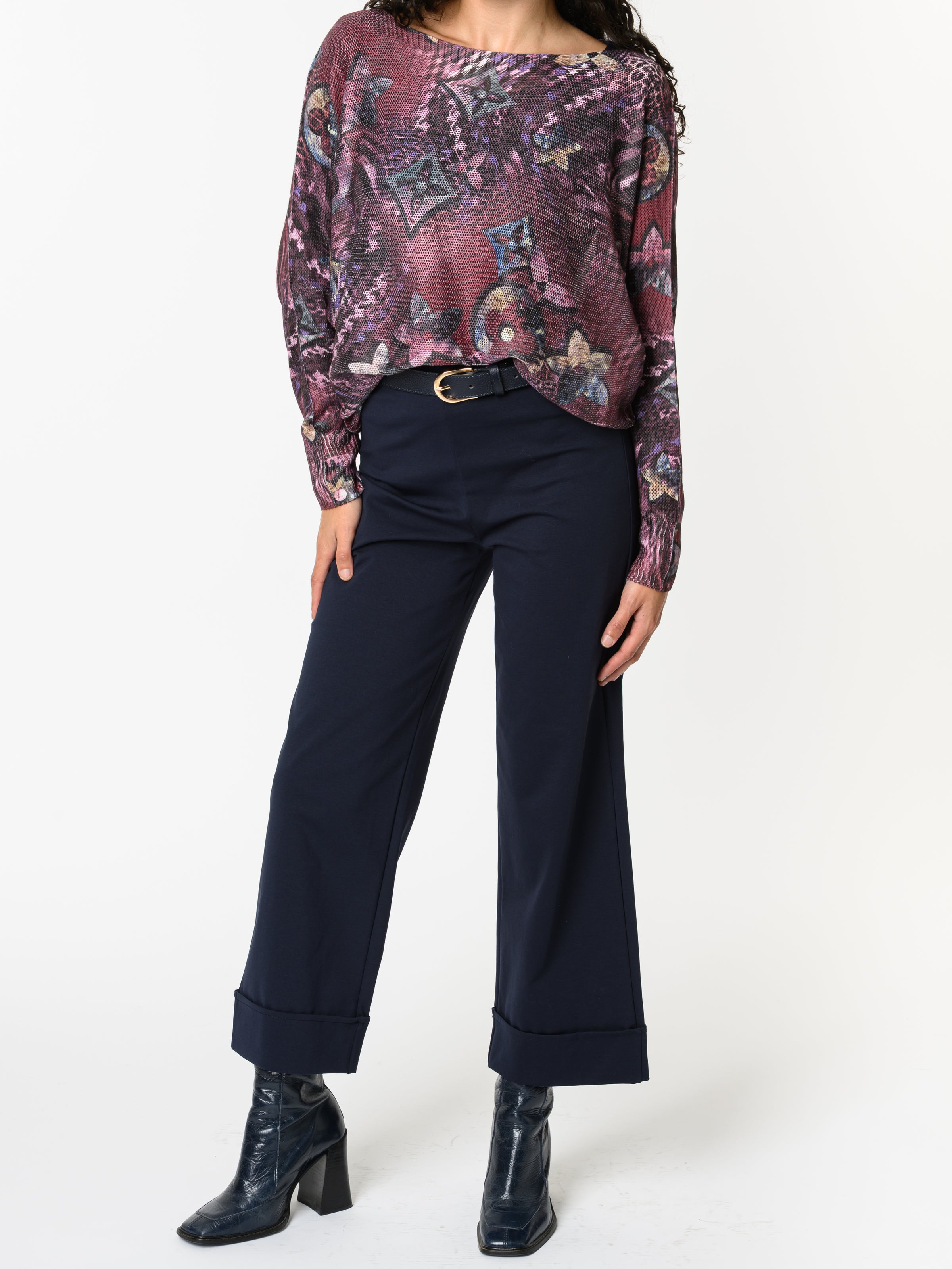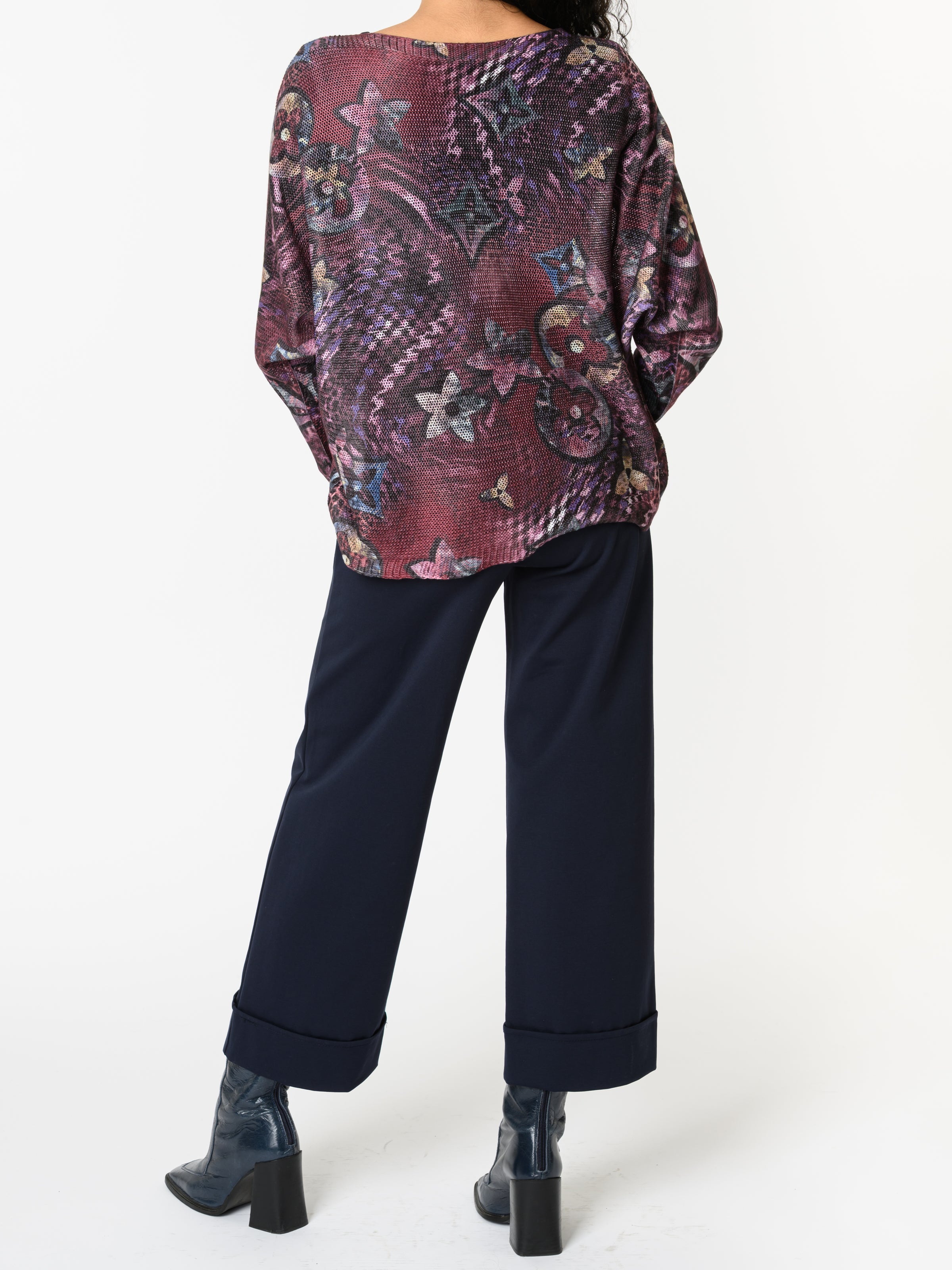 Découvrez notre chandail bourgogne avec imprimé floral. Ce modèle en mailles à manches longues est orné de motifs de fleurs kaki, jaune et bleu, ainsi que de motifs de léopard. Cette pièce allie style et tendance.