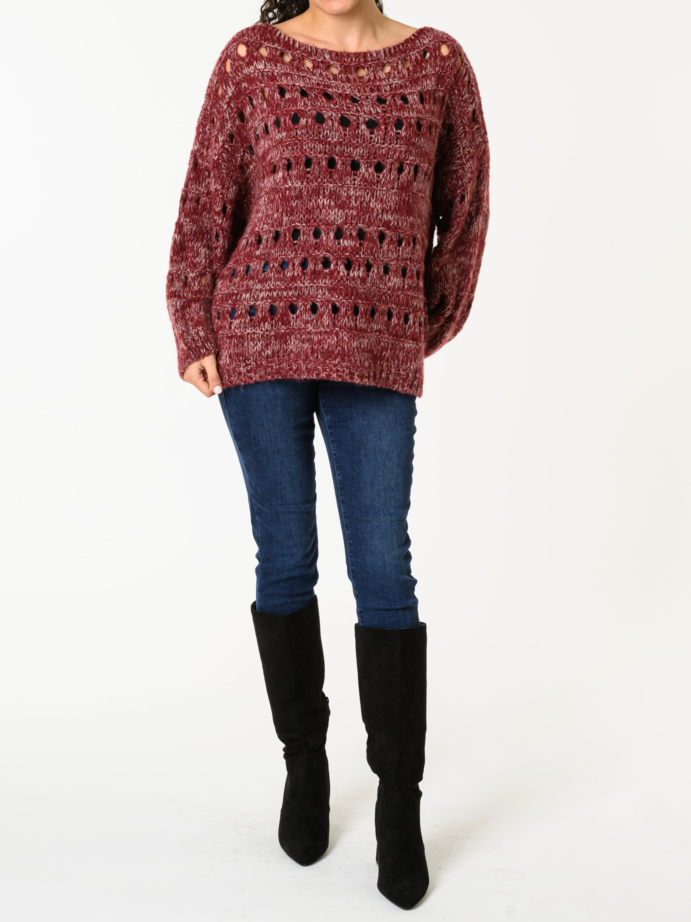 Découvrez notre chandail bourgogne et blanc en tricot. Ce modèle à manches longues est idéal pour être porté en superposition. Il est doux et il s'agence très bien avec les looks. Cette pièce allie style et confort.