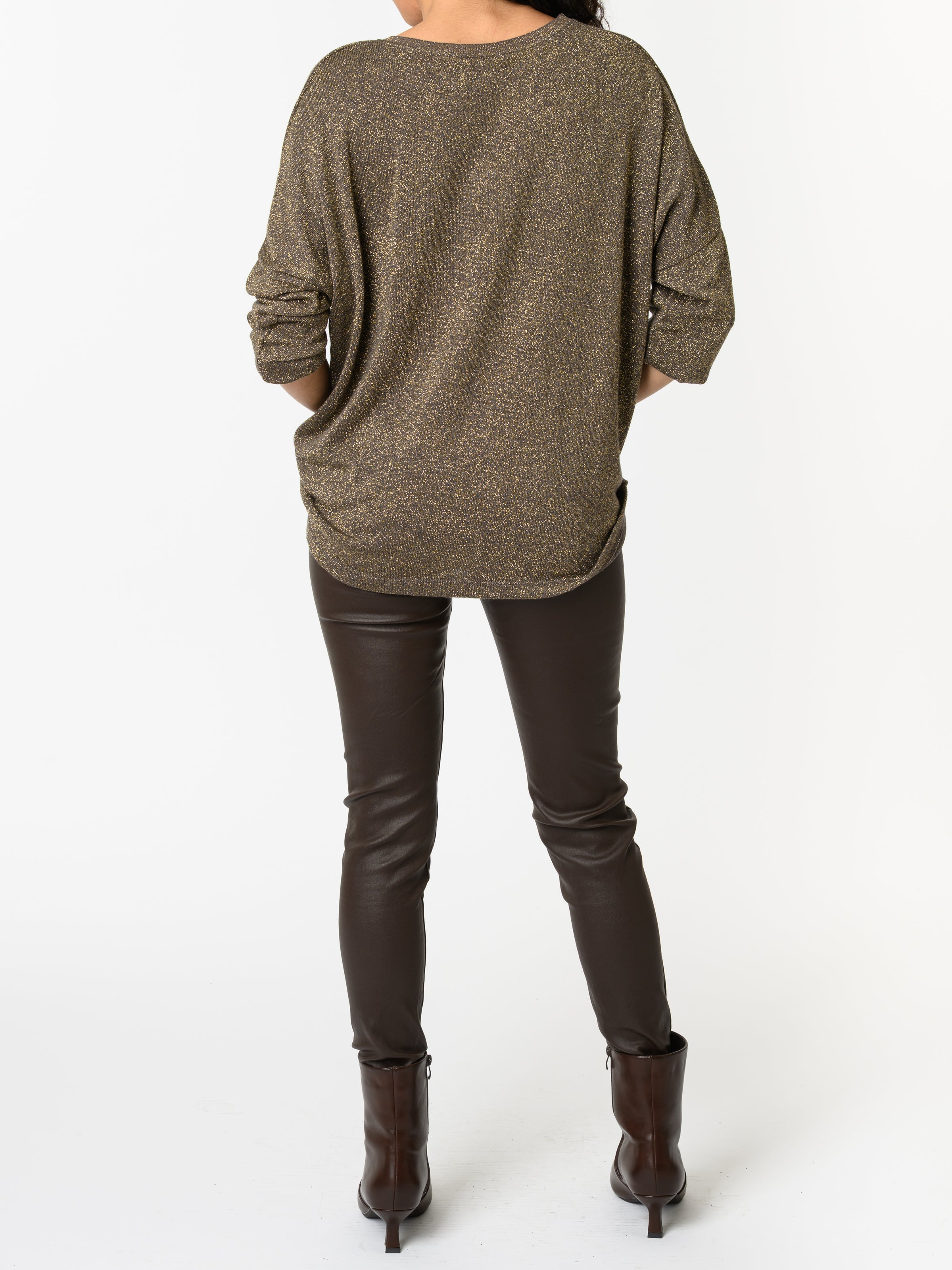 Découvrez notre chandail brun avec dorures. Ce modèle à manches longues est orné d'une brillance dorée. Avec sa couleur unie et ses dorures, ce chandail apporte une touche féminine et chic. Cette pièce allie style et confort.