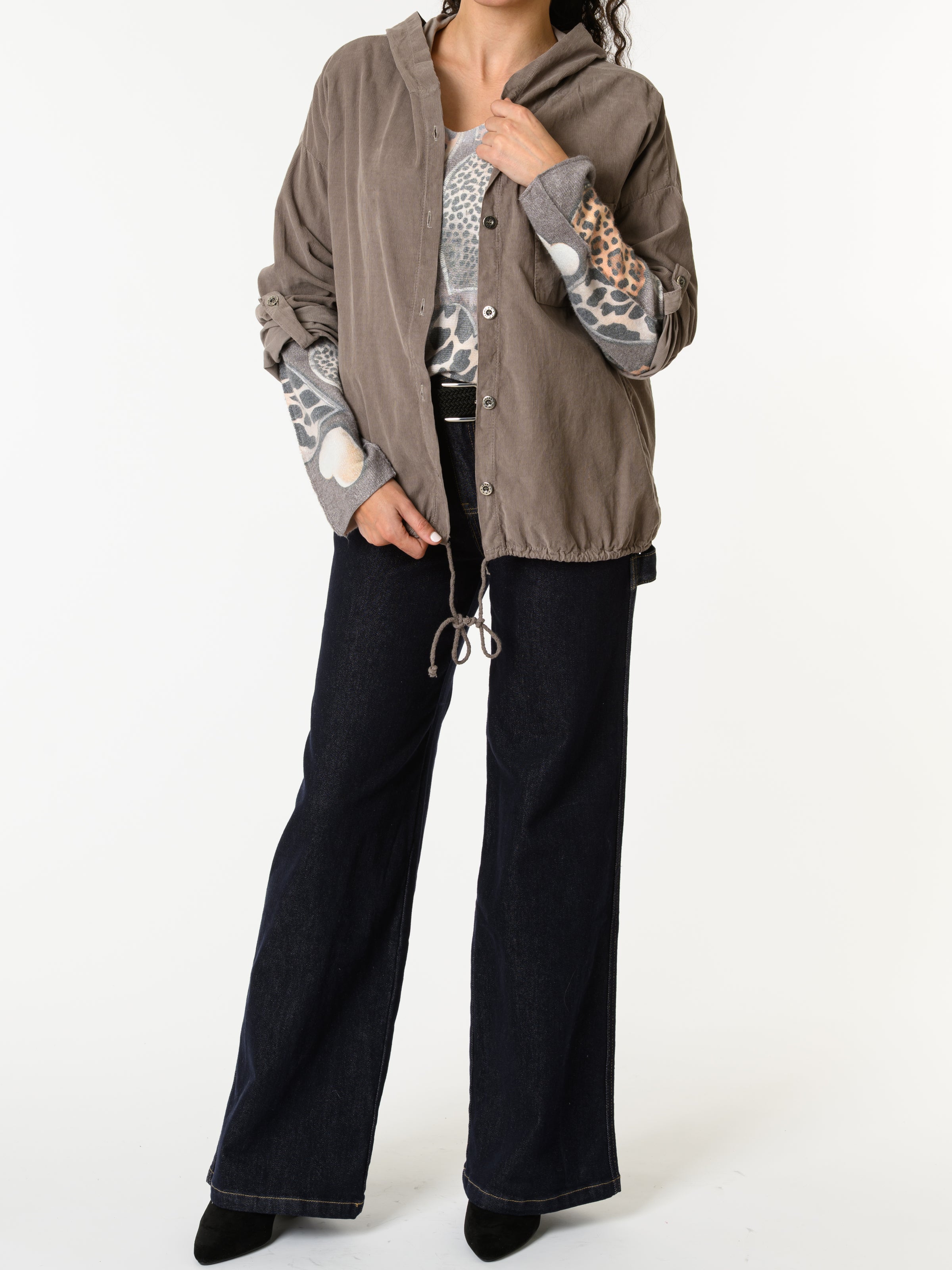 Découvrez notre chandail gris avec imprimé de cœurs léopard. Ce modèle à manches longues est orné d'un imprimé de cœurs composé de motifs de léopard à l'intérieur. Cette pièce allie style original et confort.