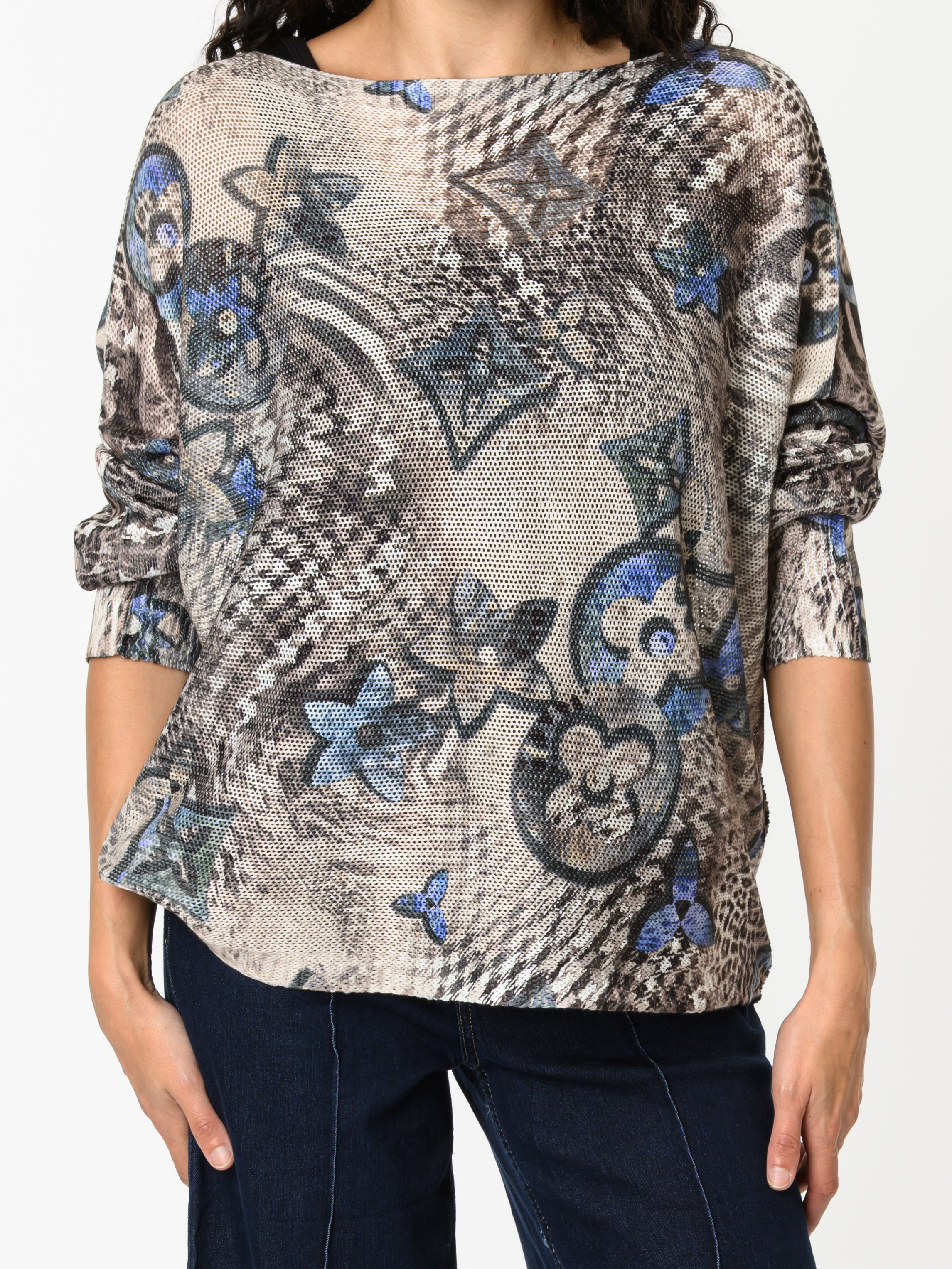 Découvrez notre chandail moka avec imprimé floral bleu. Ce modèle en mailles à manches longues est orné de motifs de fleurs bleues, ainsi que de motifs de léopard. Cette pièce allie style et tendance.