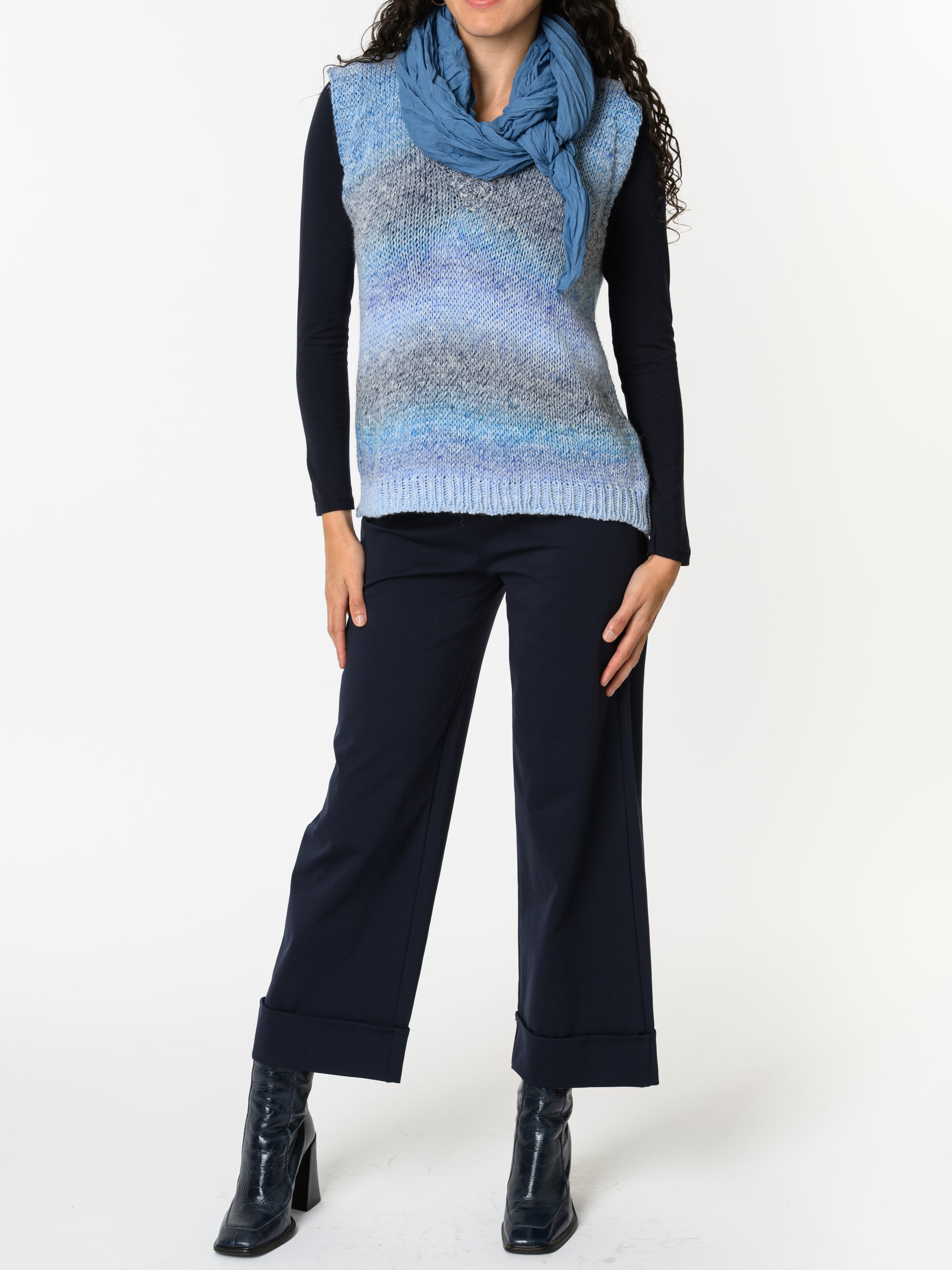 Découvrez notre débardeur bleu rayé gris et lilas. Ce modèle en tricot comporte un col en v, ainsi que des rayures gris et lilas. Il est idéal pour apporter de la superposition aux looks. Ce chandail allie style et confort.