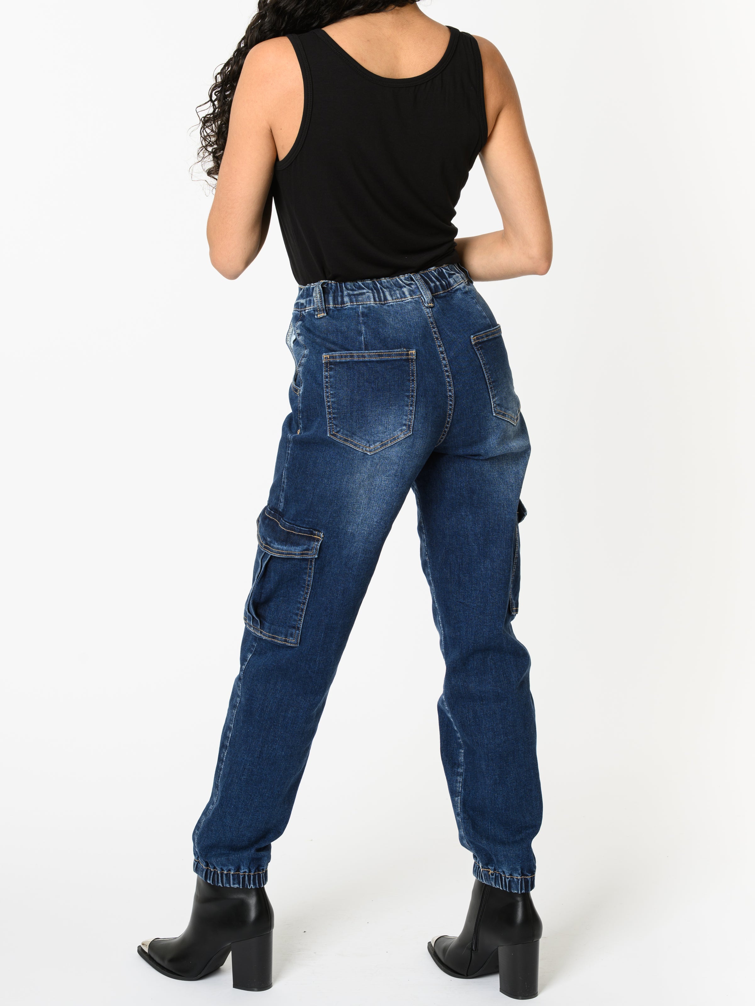 Découvrez notre jeans cargo bleu délavé. Doté de poches pratiques en avant et en arrière. Ce jeans allie style décontracté et confort. Il comporte également des poches cargo sur les côtés et il fait environ 27 1/2 pouces de longueur de jambe avec le bas déplié.