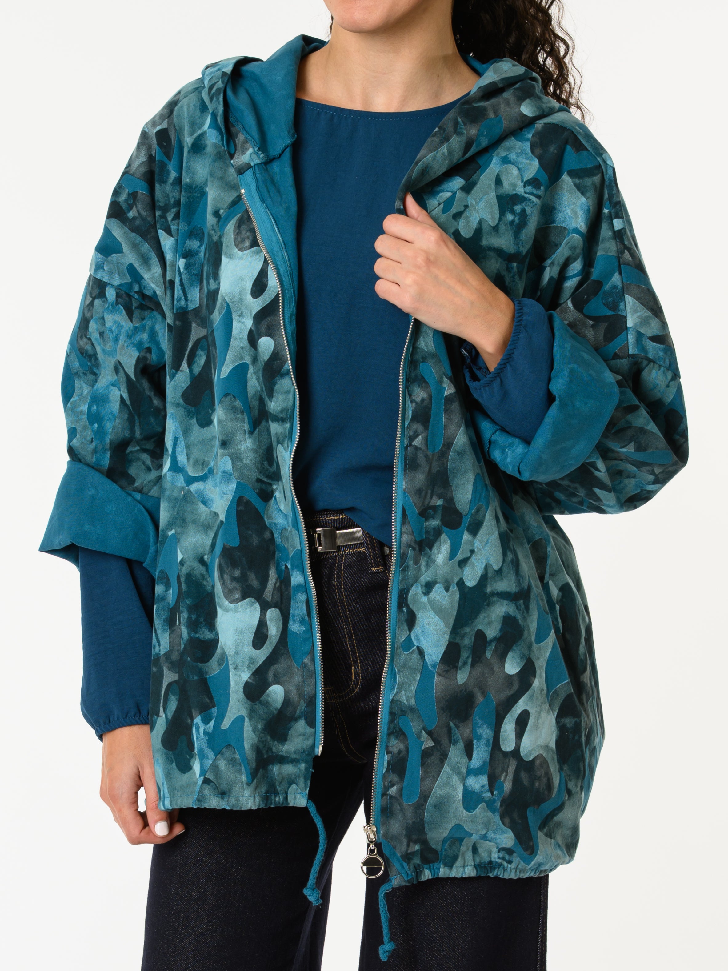 Découvrez notre veste bleue avec imprimé de camouflage. Ce modèle à manches longues comporte une fermeture éclair et un capuchon. Avec son imprimé militaire et sa couleur, cette veste allie style décontracté et tendance.