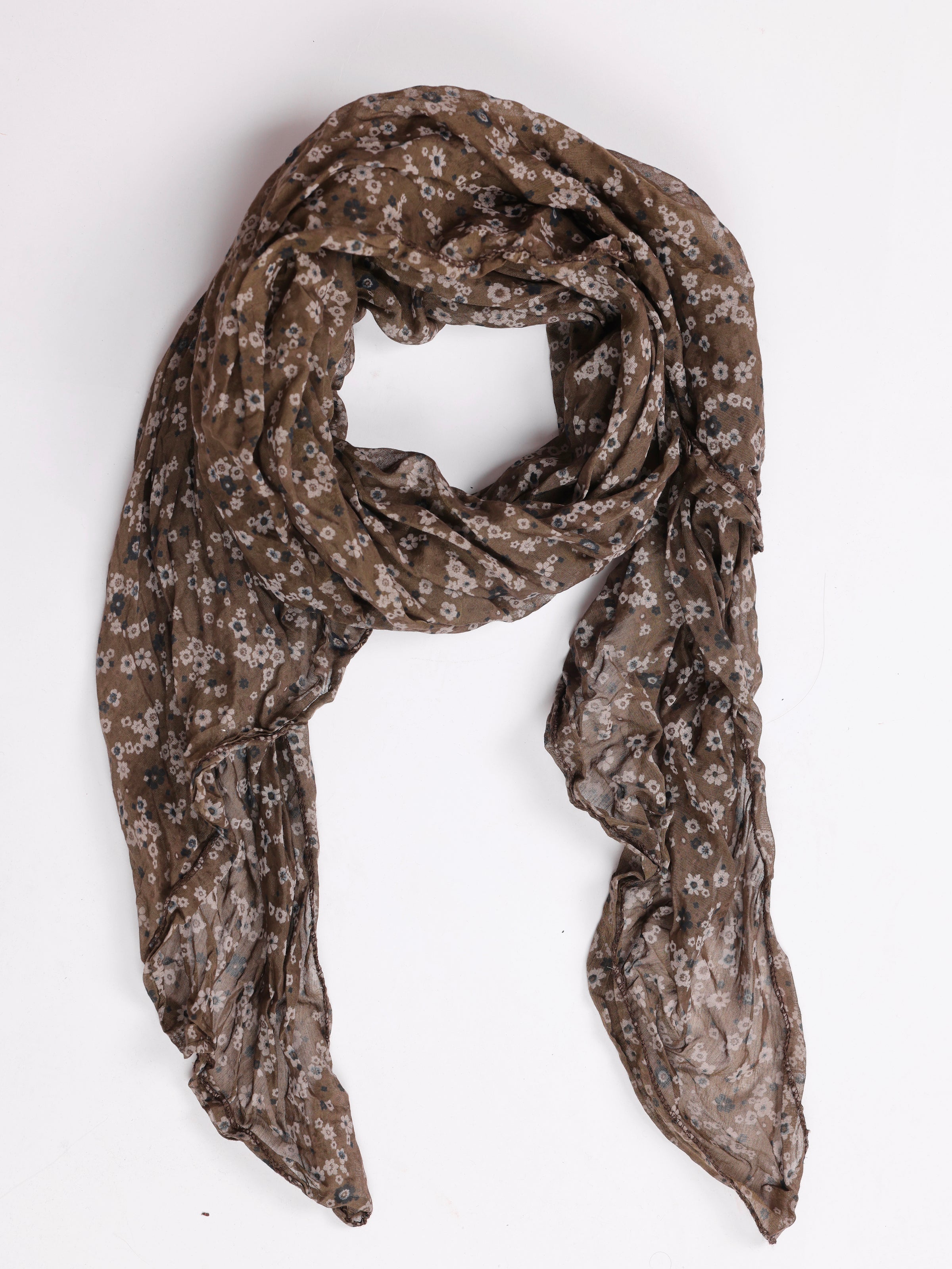 Découvrez notre foulard brun à motifs floraux 20% soie, un accessoire chic et polyvalent pour compléter votre garde-robe. Avec ses motifs de fleurs grises et bleues, ce foulard offre à la fois douceur et élégance.